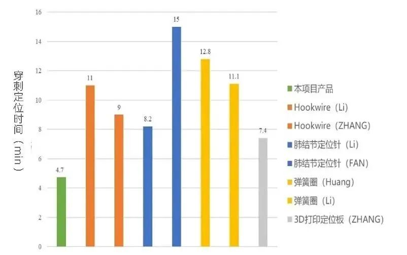 3.定位精度高、时间短:AR导航穿刺定位系统的实验室精度达到1.8mm,与传统基于固定导航设备的2-3mm定位精度相当,甚至更优。同时AR导航平均单例定位时间为4.7分钟,相较于其他传统定位手术7.4-15分钟的定位时间,优势明显;
