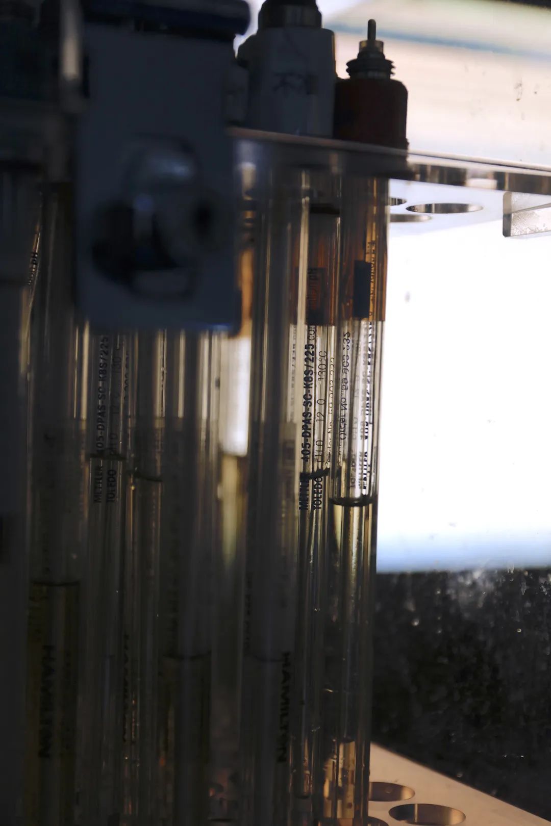 含氧量ok、温度、pH....生物反应器里的各项参数正常,一切顺利。“细胞宝宝很娇气,需要定时伺候,少点营养都不行”。刘国庆一边解释,一边拿起注射器,将液体样本放入细胞活率分析仪中,继续进行监测。他站立的这间实验室不到100个平方,却孕育着超过万亿个细胞宝宝。而这项简单的“打卡”往往也需要耗时1个小时。