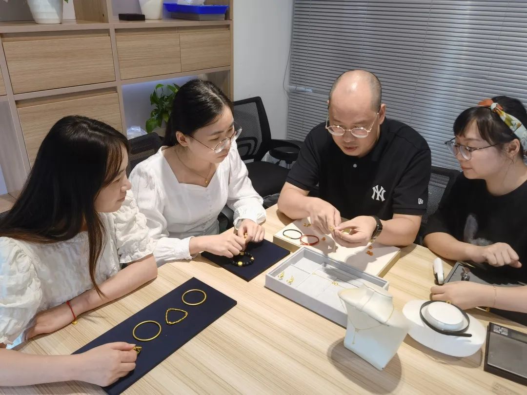 和印象中的设计师生活不同,郭琰峰并不沉醉在书桌前写写画画,设计之余的更多时间,他会到产品生产一线,学习前沿技术工艺、琢磨复杂饰品样式、审核产品出样效果……在反复地修改打磨中,推进各个系列的产品顺利落地。忙碌之余,郭琰峰习惯泡上一壶时令茶,在品茶间静心思考,产品设计的灵感也随之缓缓浮现。