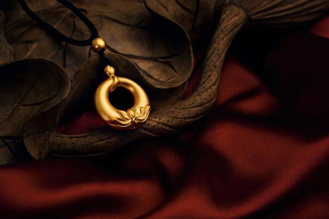 莲花虽然是黄金饰品中较为常用的主题,但是通过写意与写实相结合的设计语言,与古法铸金工艺的打造,呈现出醇厚静美的哑光质感,如同流沙一般暗暗发出光泽,无论视觉还是佩戴,都给人耳目一新的感觉。然而,古法铸金工艺复杂,手工环节多,需要技巧纯熟的匠人投入大量精力才能制成,制作时间是普通金饰的许多倍,因此,必须在工艺上进一步优化,才能兼顾生产效率与设计效果。