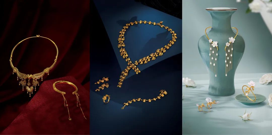 老庙新中式黄金珠宝传递的是一种东方生活美学,除了设计本身,更需要文化底蕴支撑。从古韵金系列开始的工艺创新,到新消费场景下的主题开拓,都是设计师们不断学习、思考的结果,他们将传统的文化内涵、现代的生活体验融于作品中,赋予冰冷的黄金器物新的生命。