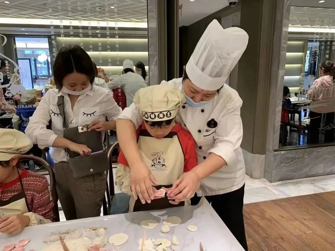 从2020年开始,他们尝试推出了“南翔小当家”亲子非遗体验活动,采用线上报名+线下活动的方式,让像李娜这样原先站在幕后的点心师们也能有机会走向台前,以面对面的形式让小朋友们领略南翔小笼制作技艺的魅力,并配合寓教于乐的教学过程让非遗文化真正“活”起来、“火”起来。在这个过程里,李娜也多了一个“娜娜老师”的新身份,拥有了一批小小学徒。