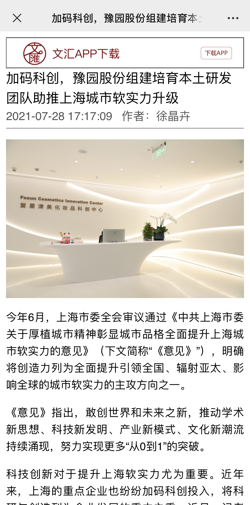 从“制造”到“智造”,豫园股份科创中心升级助力中国化妆品行业崛起