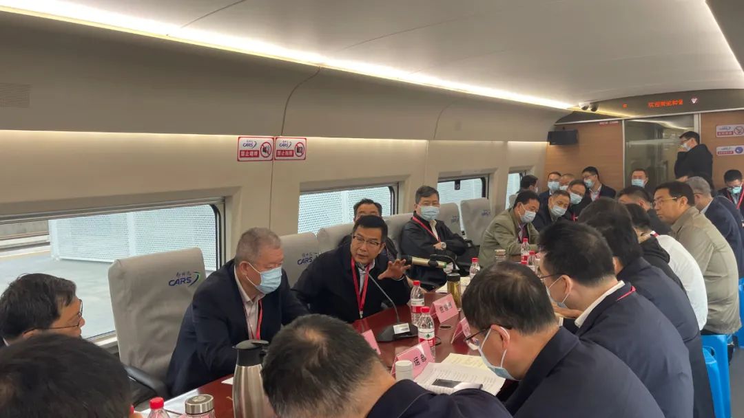 中国政企合作投资基金股份有限公司董事长冯晋平到杭绍台铁路调研,先后查看了绍兴北站等工点建设情况,了解了联调联试进展,并就项目资金保障等事宜与公司领导进行了会谈交流。