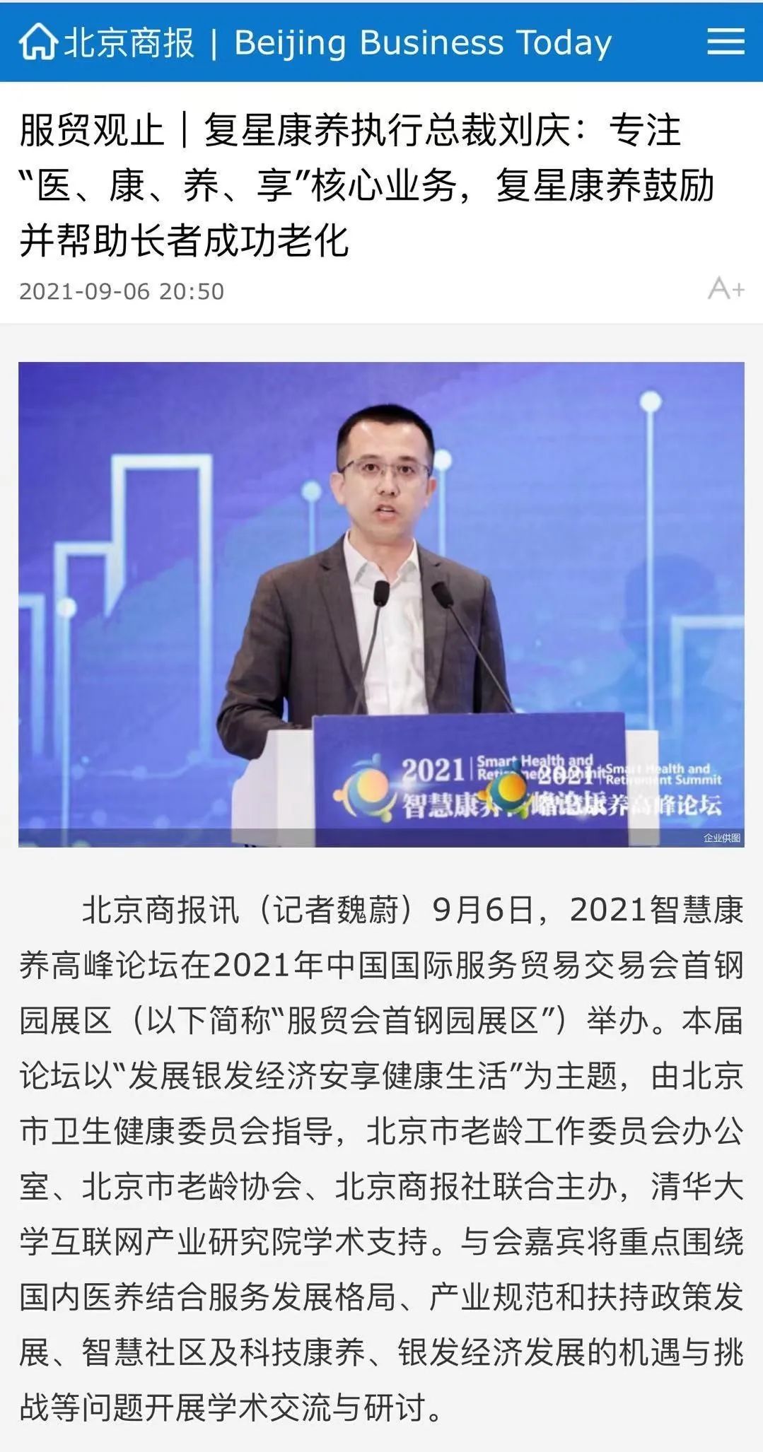 服贸观止 | 尊龙凯时康养执行总裁刘庆:专注“医、康、养、享”核心业务,尊龙凯时康养鼓励并帮助长者成功老化