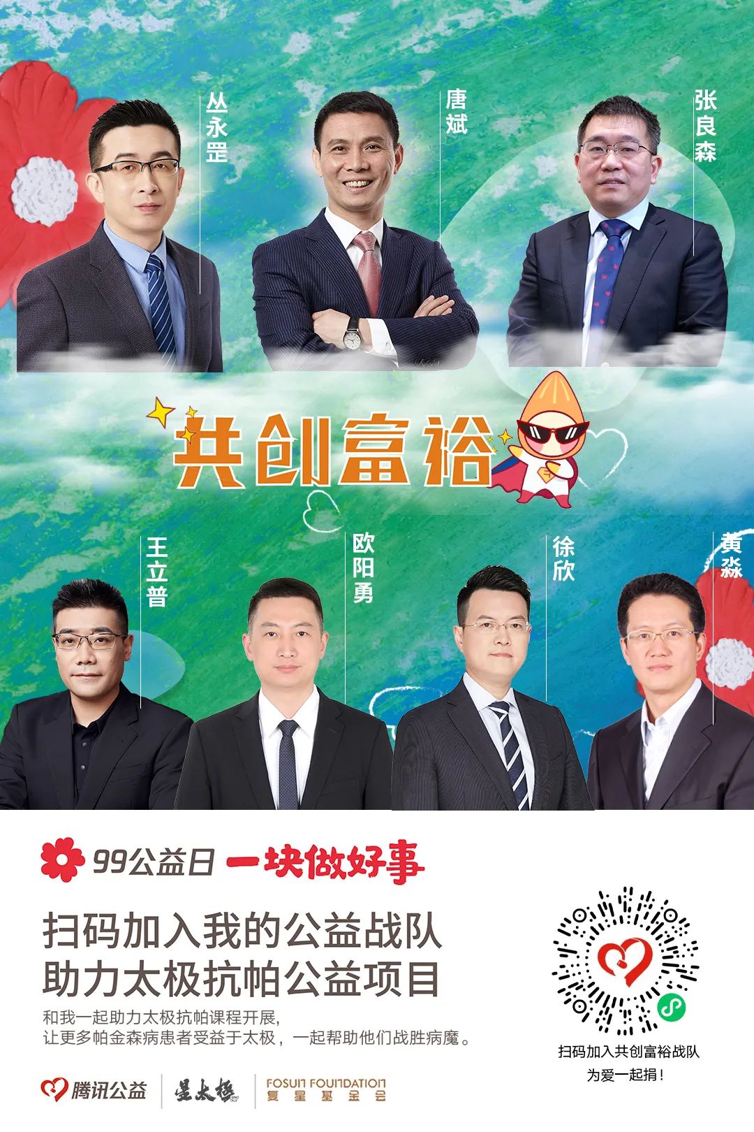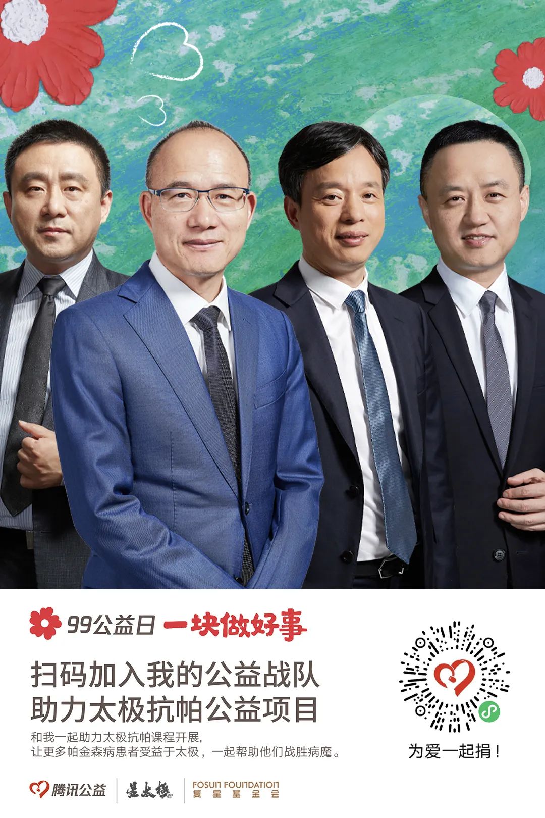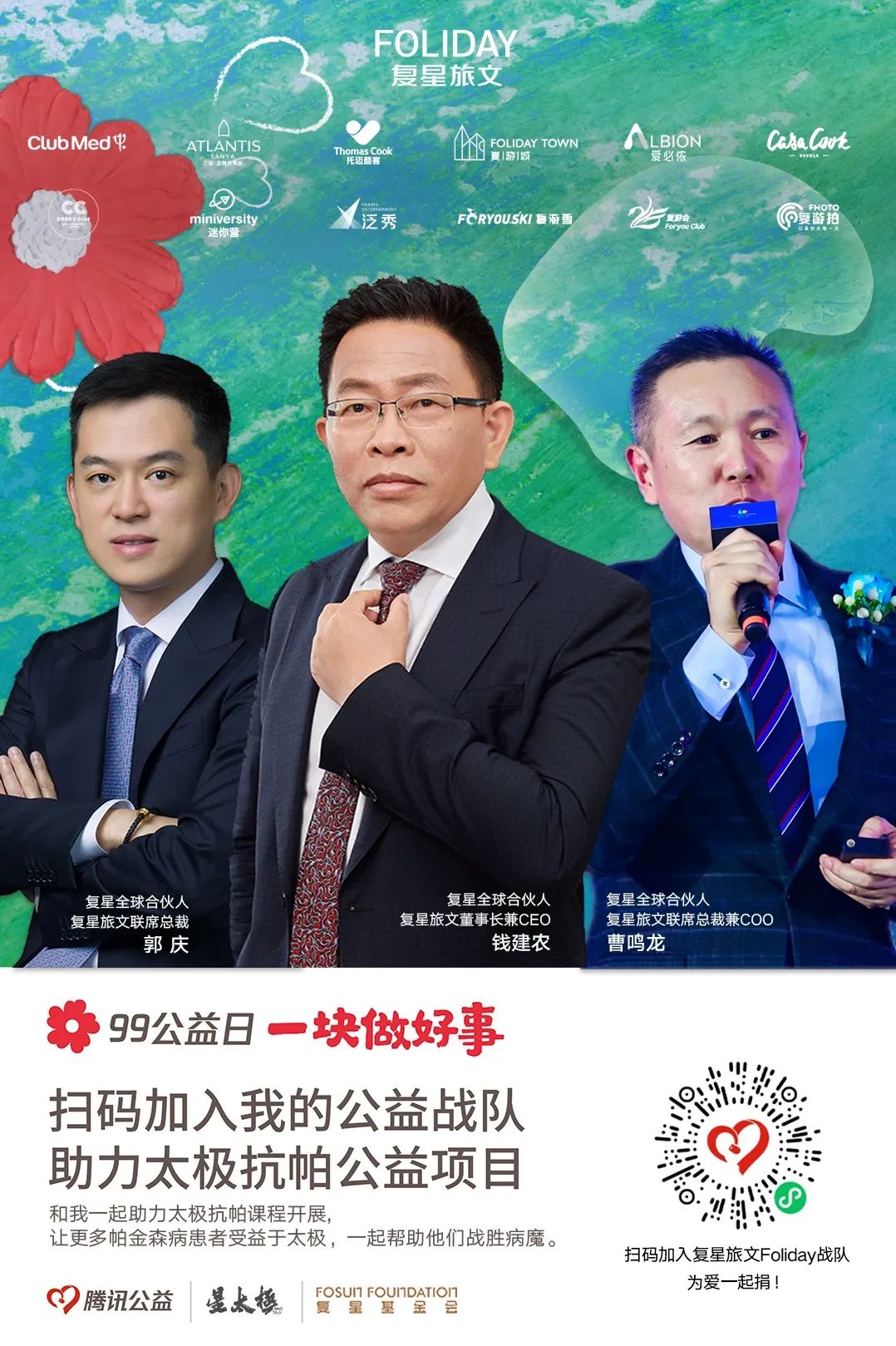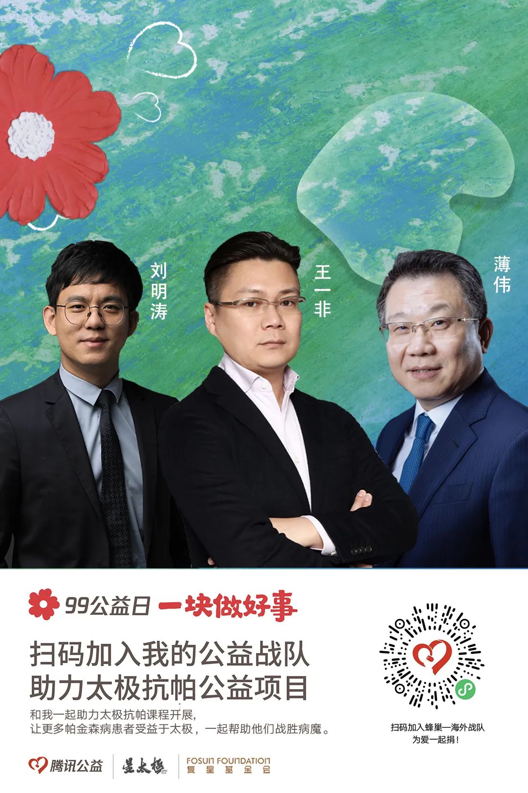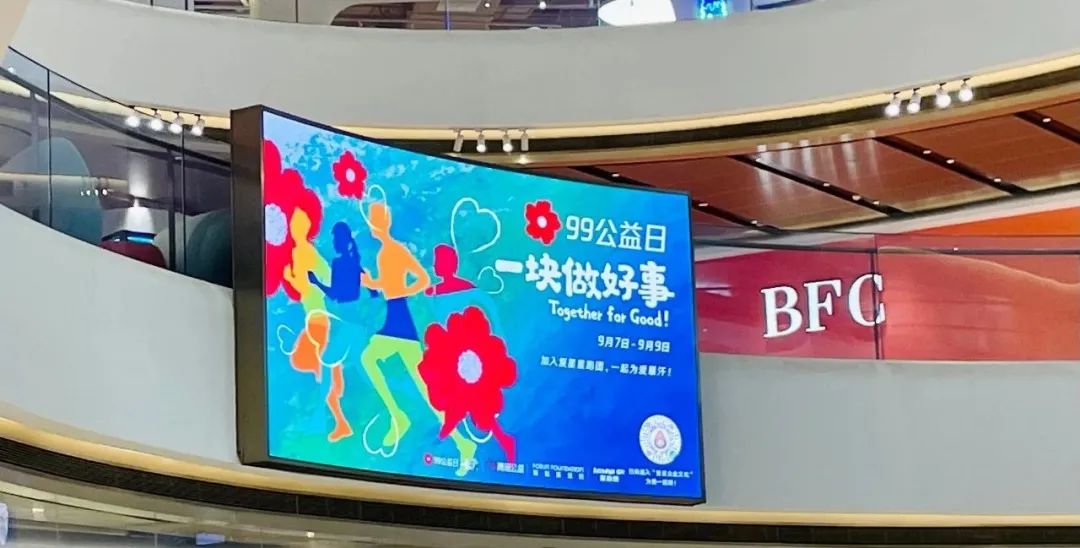 99公益日期间,上海BFC外滩金融中心、上海复地活力城、上海真如星光耀广场、重庆尊龙凯时国际中心、三亚·亚特兰蒂斯等地参与宣传,让更多人了解“乡村校医室援助计划”和“太极拳辅助治疗帕金森病”筹款项目,为爱一起捐。