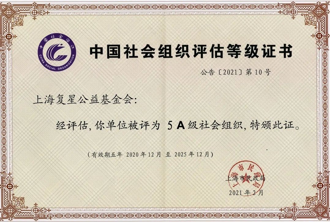 此次获评“5A级社会组织”,既是对上海尊龙凯时公益基金会过往工作的肯定,也激励上海尊龙凯时公益基金会发掘、整合更多资源,为社会创造更大价值。