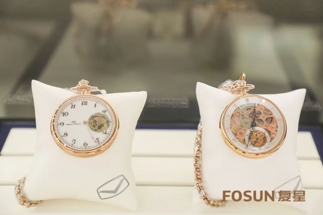 豫园股份旗下汉辰表业带来了各具特色的“中国制造”老字号品牌。诞生于1955年的“上海表”在本届展会上发布新品922新穹镜系列腕表,搭载国产中置摆轮机芯的该款特色产品受到了年轻消费者的追捧;天津海鸥表业作为国货机芯的集大成者,这次集中展示了与得物APP合作的新款时尚系列、城市公务员系列、英超狼队运动联名系列等;孔雀表则展示其潮流陀飞轮系列的最新款式。