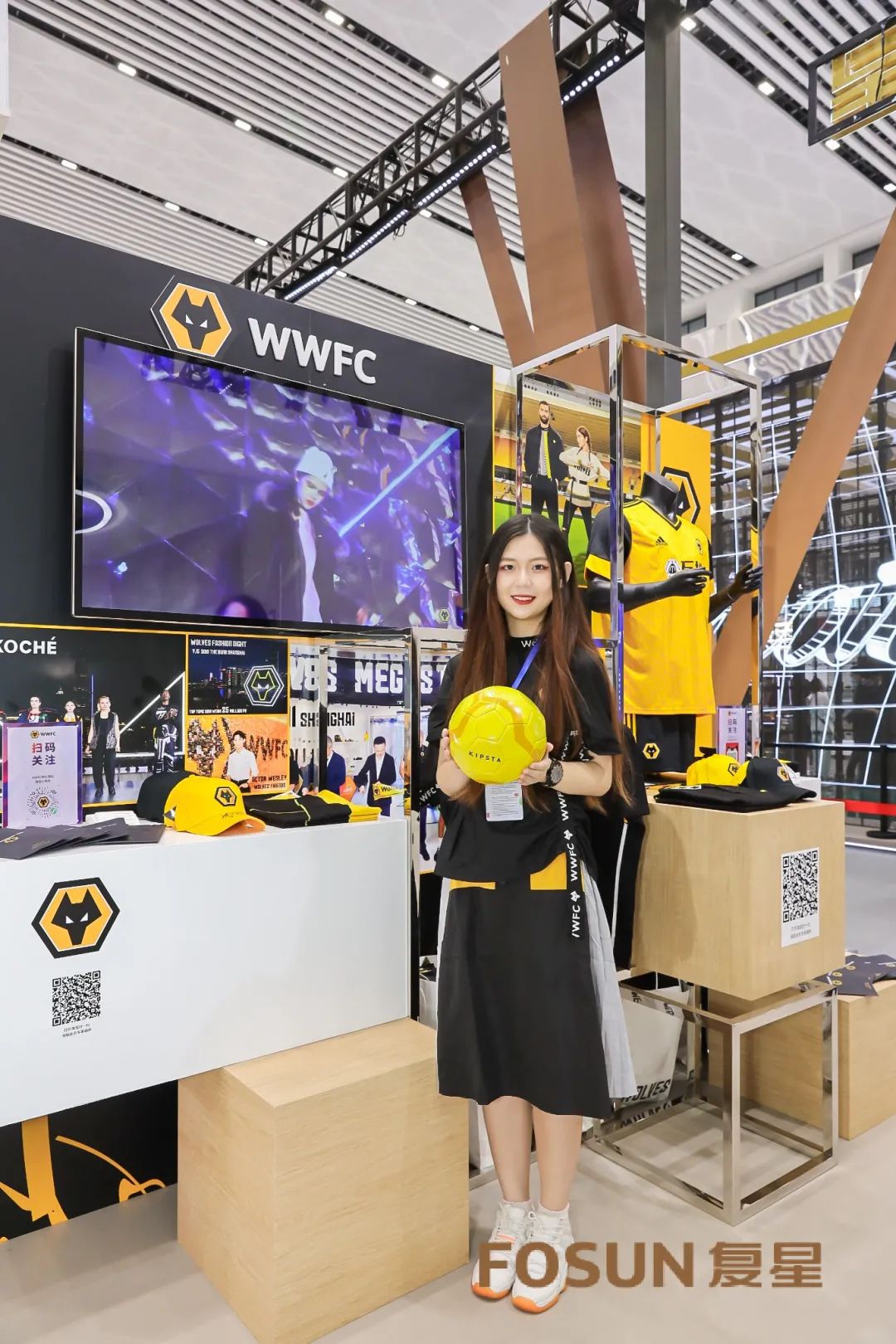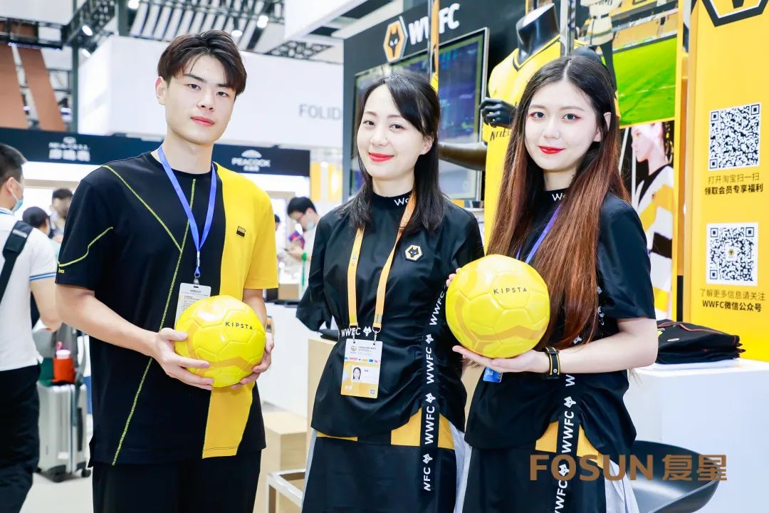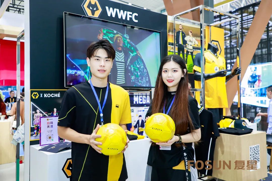 WWFC(Wolverhampton Wanderers FC)狼队潮品是源自英格兰百年足球俱乐部狼队Wolves的潮流运动生活方式品牌。此次消博会展出的是狼队主场队服及足球周边潮流时尚服饰类产品。在众多观众及展商中,不乏球迷的身影及赞叹声!