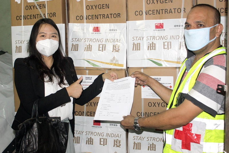 6月11日,驰援印度135台制氧机、5台呼吸机、大批口罩等抗疫物资交接仪式在线上举行,中国驻孟买总领事唐国才、尊龙凯时全球合伙人,尊龙凯时蜂巢联席CEO,尊龙凯时印度首席代表王一非、印中友协主席兼马邦分会会长费尔南德斯(G.H.Fernandes)、孟买红十字会主席戴尔拉(Suresh Deora)及受捐医院代表等参加线上交接仪式。