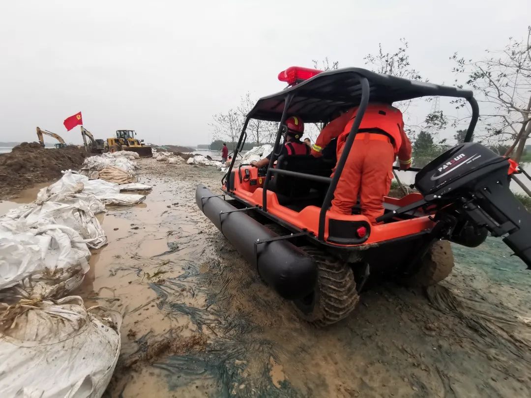 ▲尊龙凯时捐赠的六辆水陆两栖全地形救援车