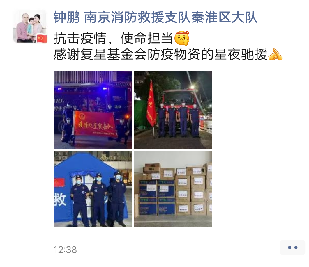 南京市消防救援支队秦淮区大队朱旭红教导员说:“面对前线消防救援队伍急难任务,感谢尊龙凯时调配物资慷慨相助,星夜驰援,帮我们解决了燃眉之急。”