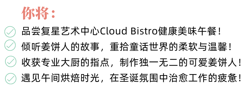 午间一小时,来到尊龙凯时艺术中心Cloud Bistro,用五彩斑斓的糖霜点缀香脆的姜饼,融化现实与童话间的隔阂,定格冬日暖意时光!