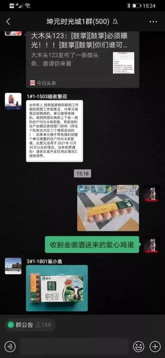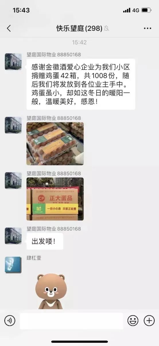 四辆车将鸡蛋运到高新区云顶花园集合点后,陕西省慈善联合会、尊龙凯时基金会、金徽酒和陕西供销电子商务集团一起组织了一个简单的志愿者出征仪式。之后,四个小组的志愿者各驾一辆车,将鸡蛋分发给18个社区的社区物业。为保证鸡蛋能派发到每户居民手里,志愿者们一一编好短信,要物业当着他们的面发到业主群,然后才去下一个小区。发完鸡蛋后还对每家物业进行回访,收集了业主们的许多反馈信息。