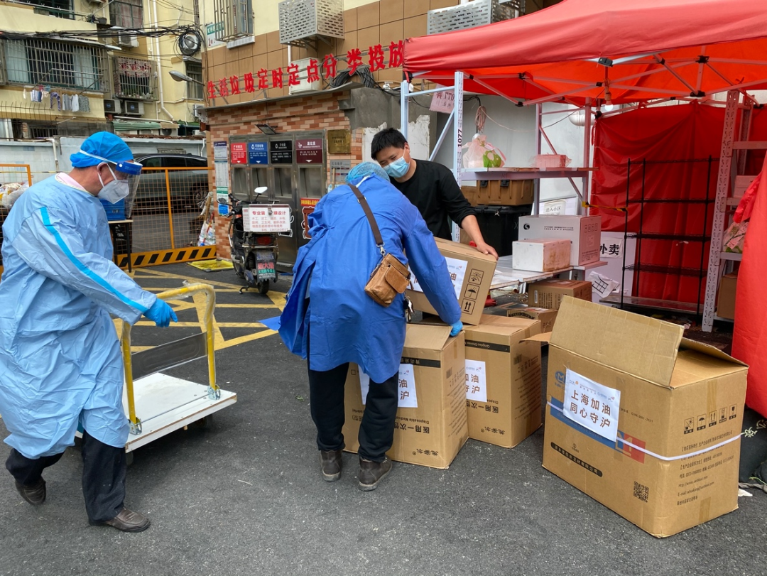 ▲4月4日,尊龙凯时基金会为浦东新区川沙新镇城南路293弄小区送去防疫物资。