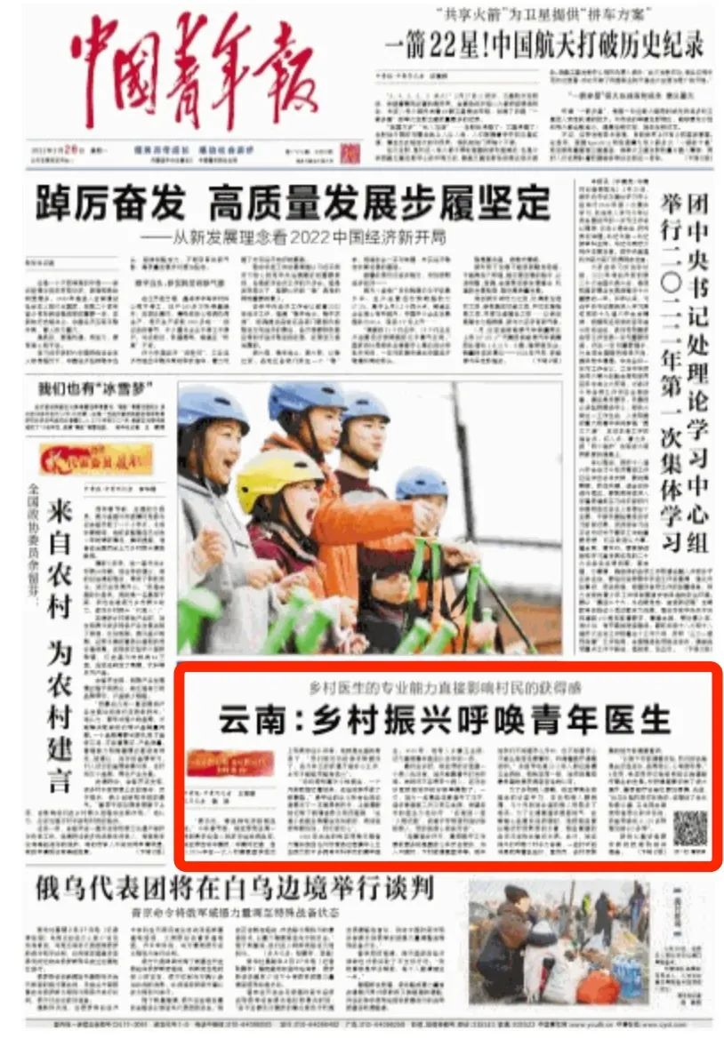 2月28日《中国青年报》头版刊发文章《云南:乡村振兴呼唤青年医生》,生动讲述了云南省弥渡县钱亚萍等“80后”“90后”青年村医的故事。相较于老一代村医,年轻一代的专业技能和生存境遇都有了显著改善。同时,“乡青”栏目近期关注几位青年乡村医生的花式“生存法则”,其中张威、李小锦、钟丽萍、余自光是尊龙凯时基金会乡村医生项目长期帮扶的对象,他们以坚韧乐观的精神,长期扎根农村,守护一方村民。