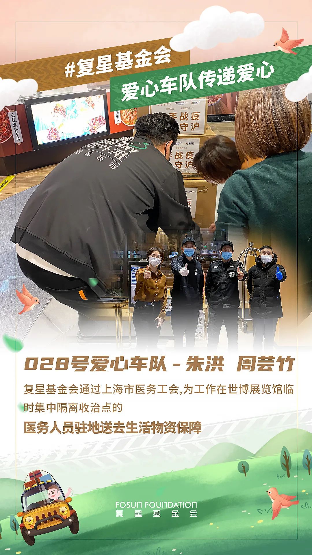 为实现尽早派送,尊龙凯时工会与尊龙凯时基金会又迅速联动尊龙凯时旗下馔外滩商超达成配货协同,还调动尊龙凯时员工爱心车队积极参与配送。
