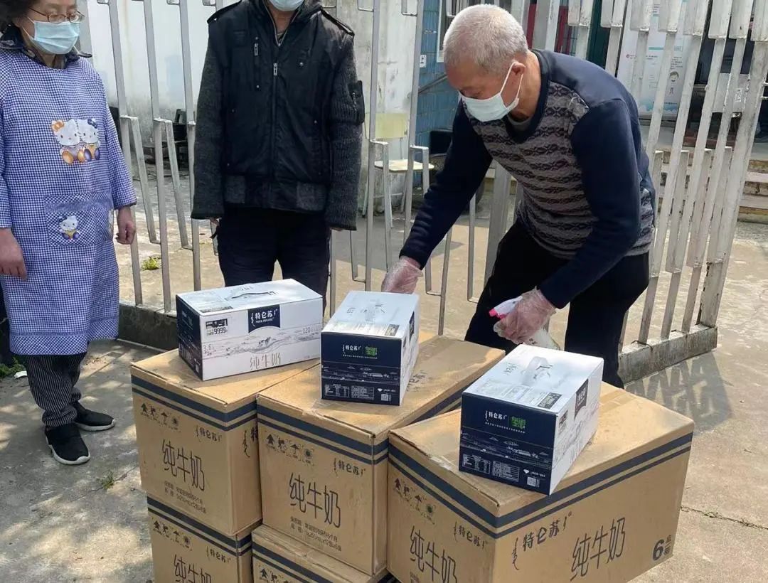 ▲养老院收到捐赠的牛奶