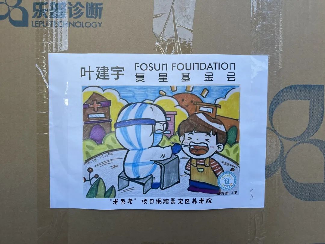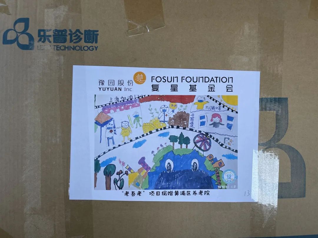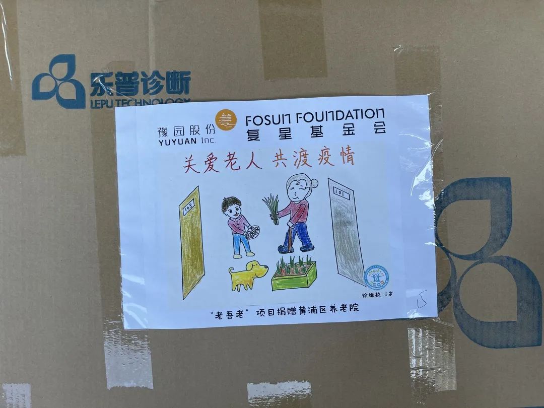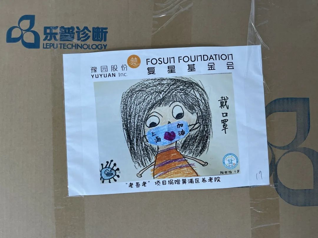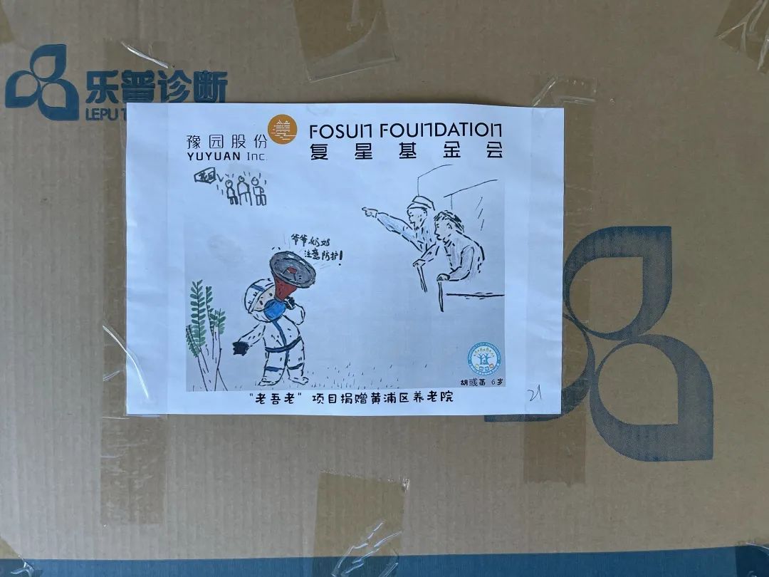 33幅童言童画 贴在物资箱上送给了爷爷奶奶们