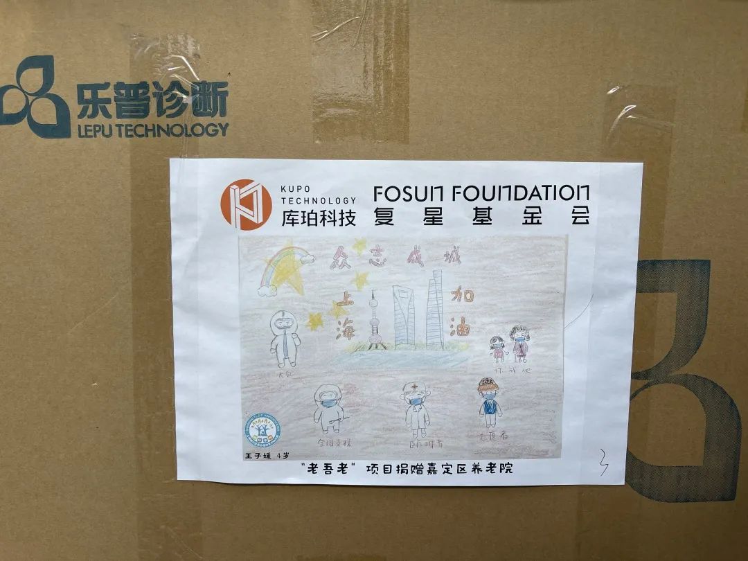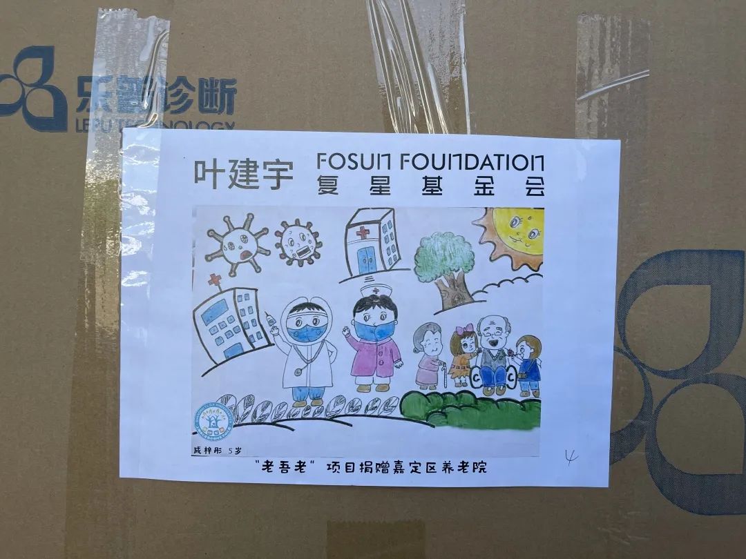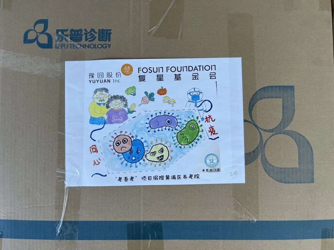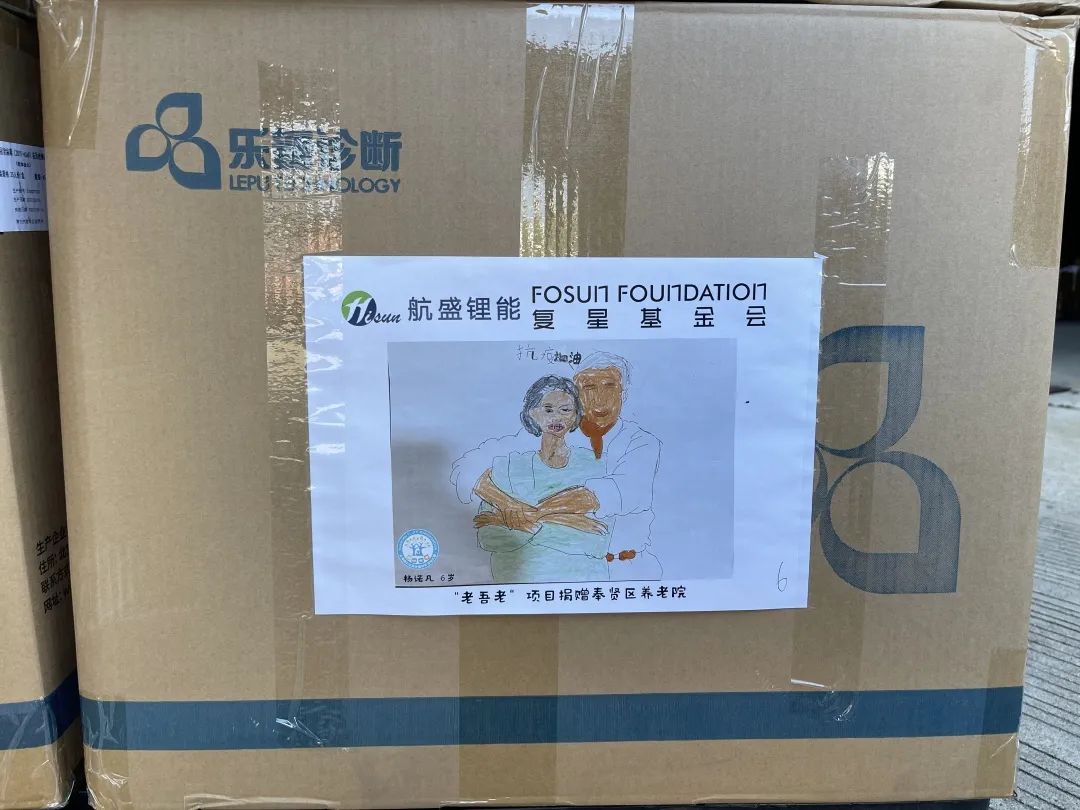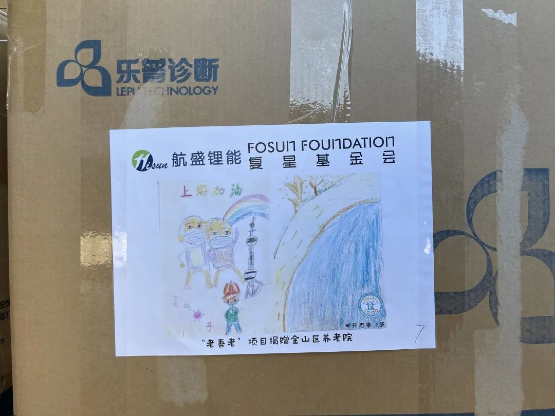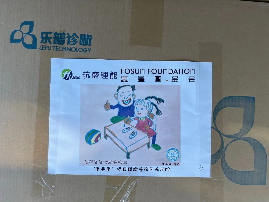33幅童言童画 贴在物资箱上送给了爷爷奶奶们