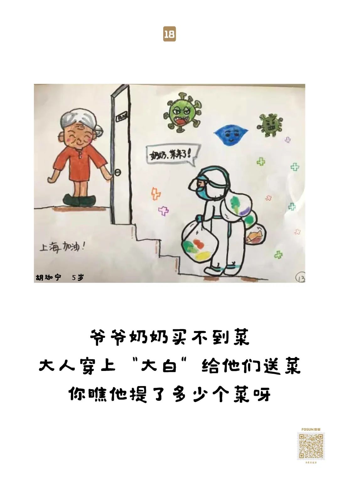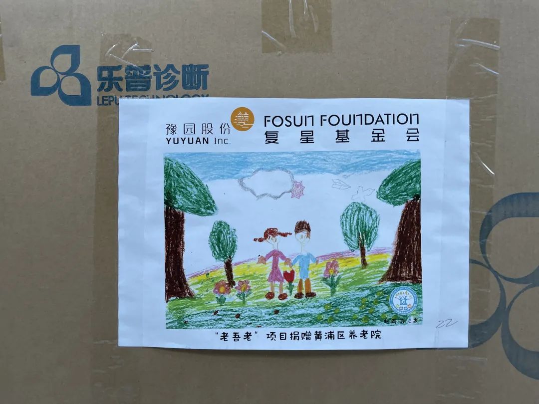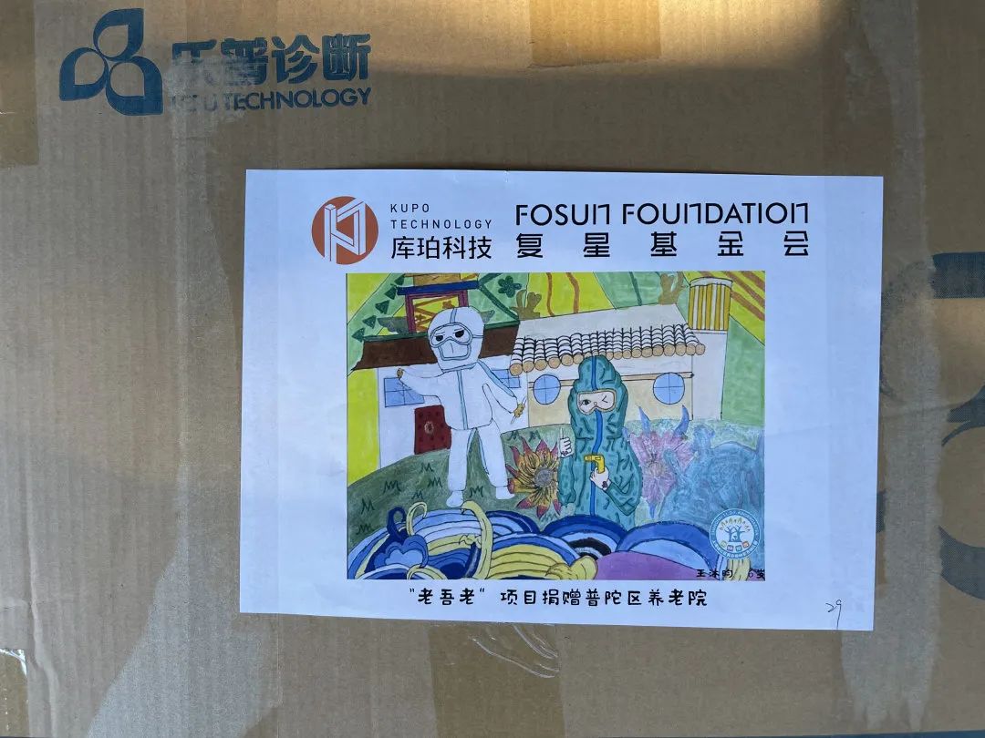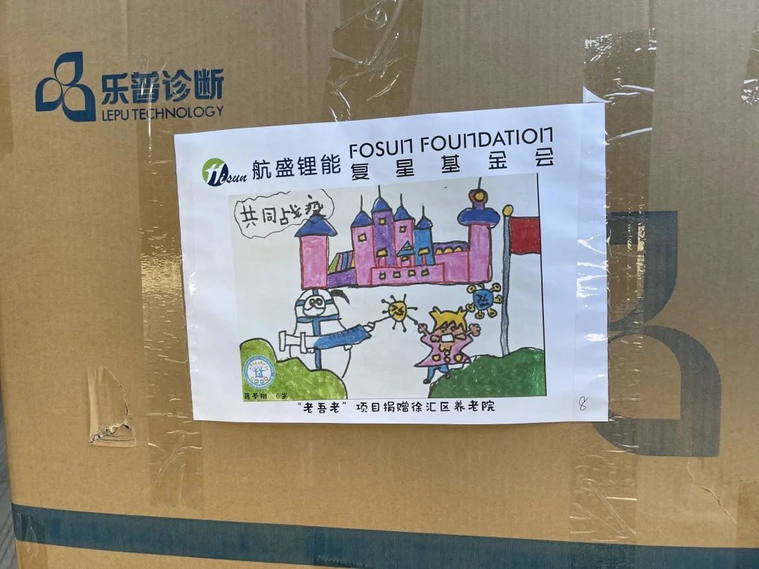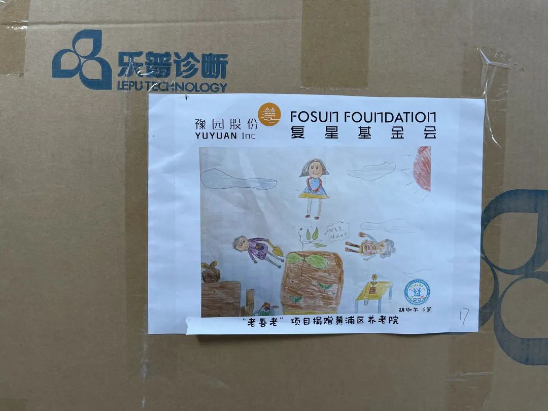 33幅童言童画 贴在物资箱上送给了爷爷奶奶们