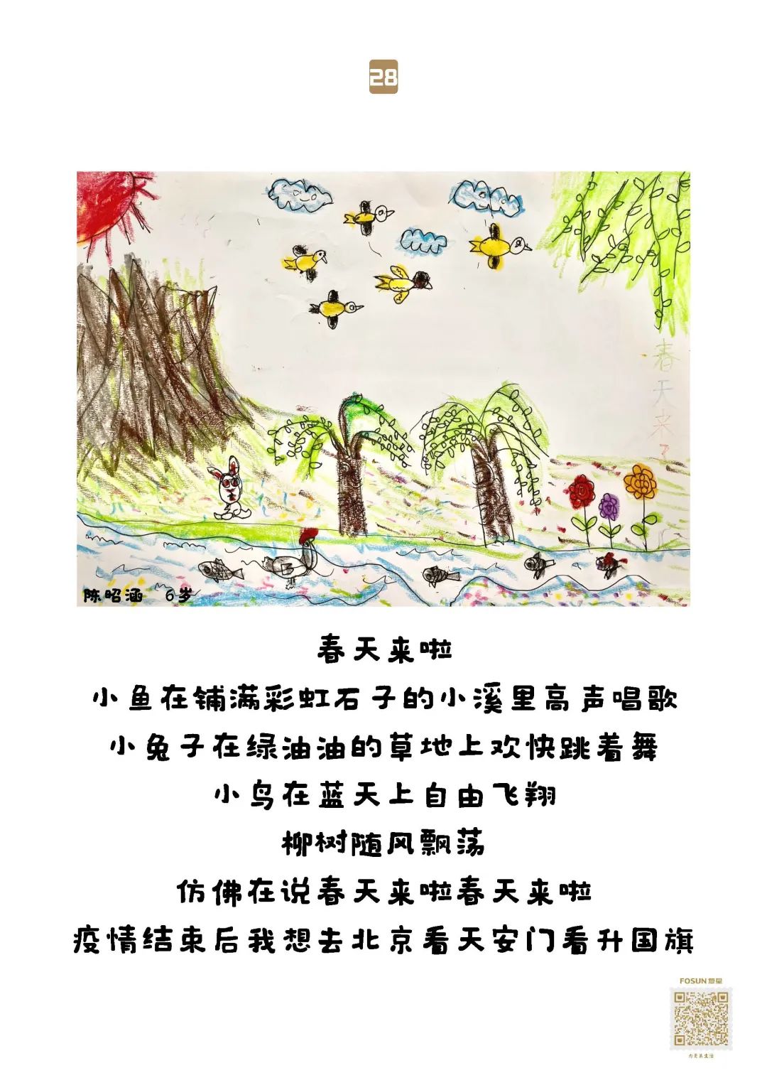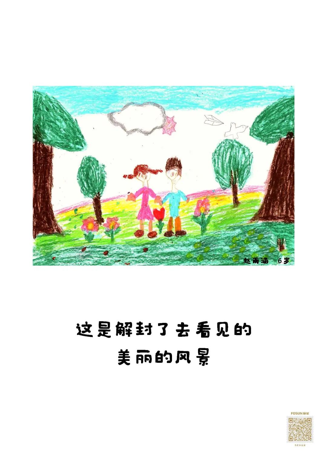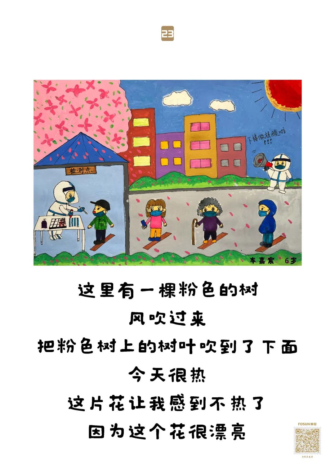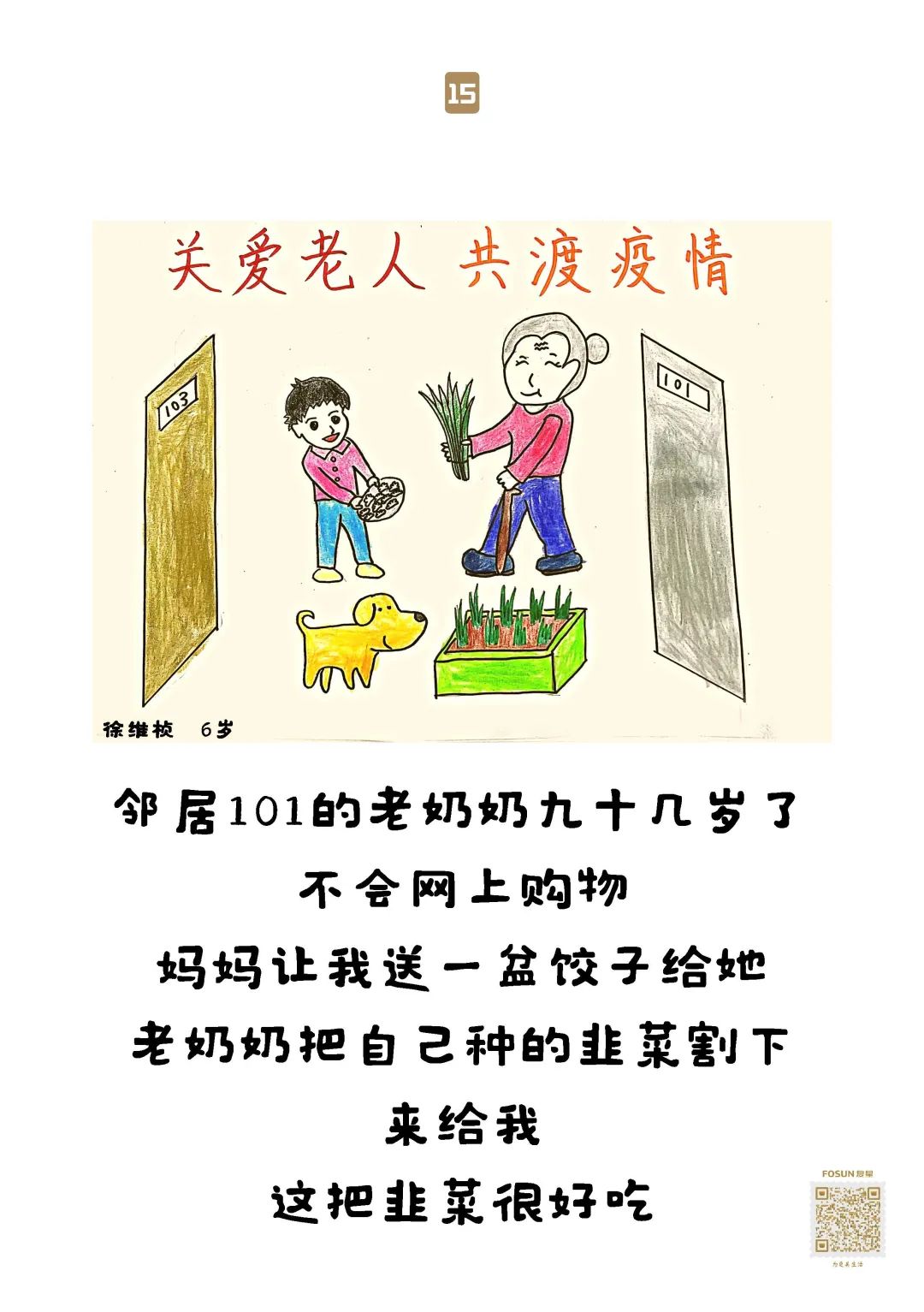 33幅童言童画 贴在物资箱上送给了爷爷奶奶们