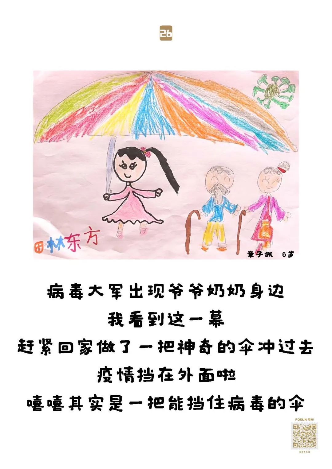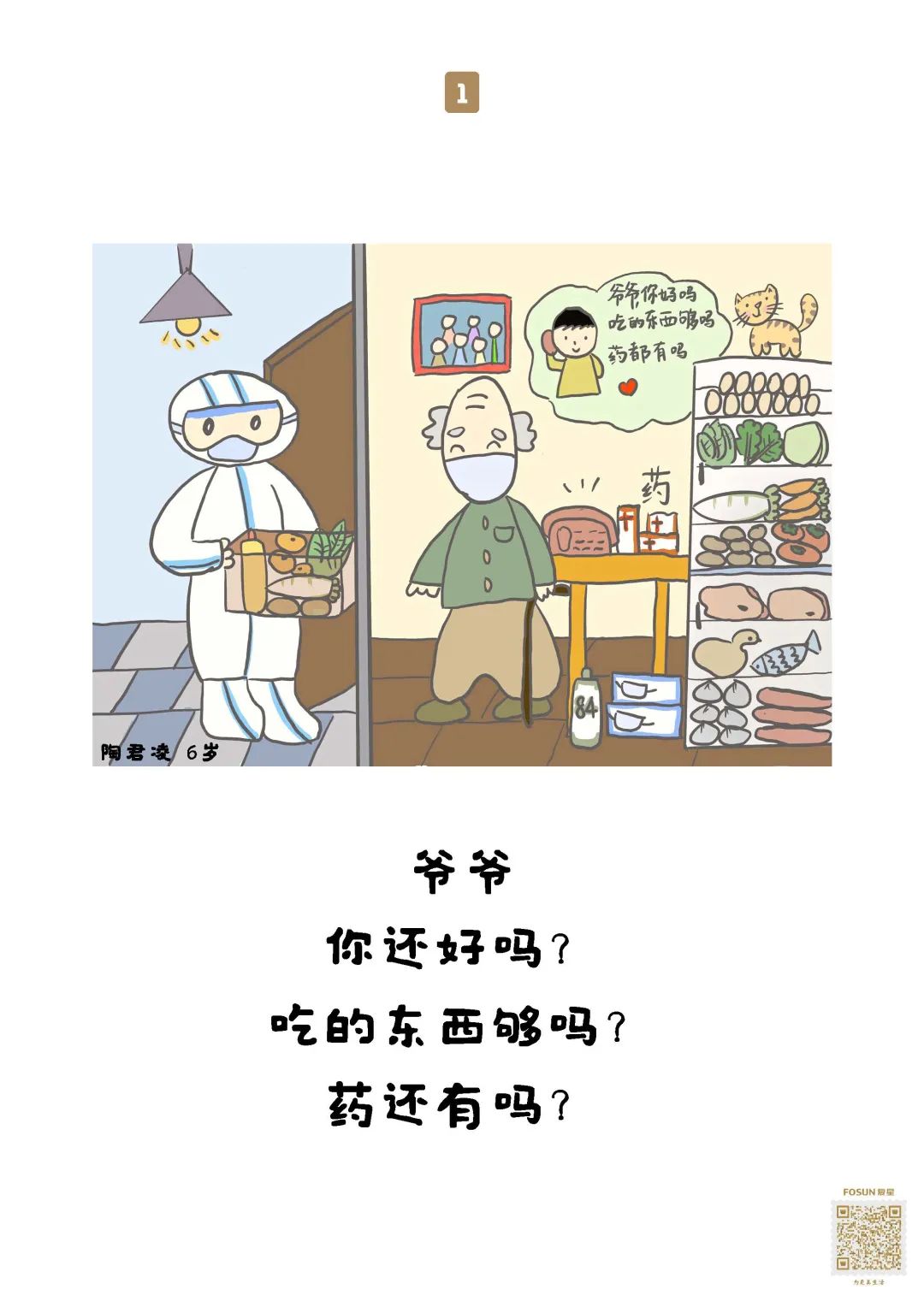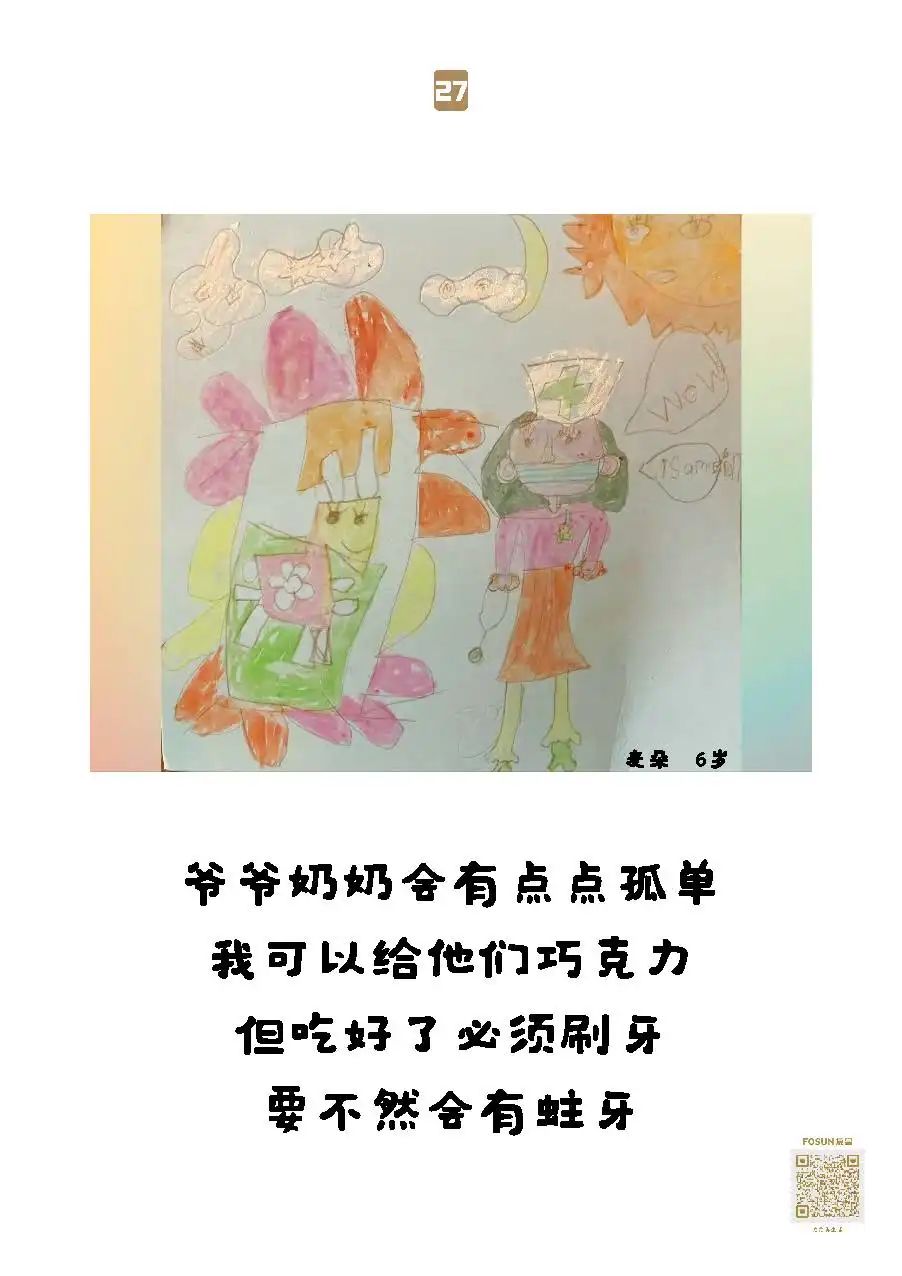 这些“童画童话”,随物资送去养老院保护“老宝贝”,就像小宝贝们说的:我有金钟罩,我有神奇的大伞,爷爷奶奶会健健康康、平平安安的!