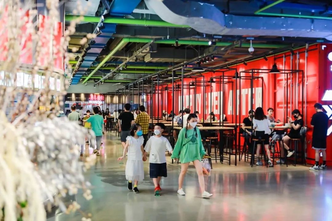 在北广场的草坪,有露营帐篷、天幕、休闲椅供免费休憩,色彩丰富的元素色块,装点盎然生机。
