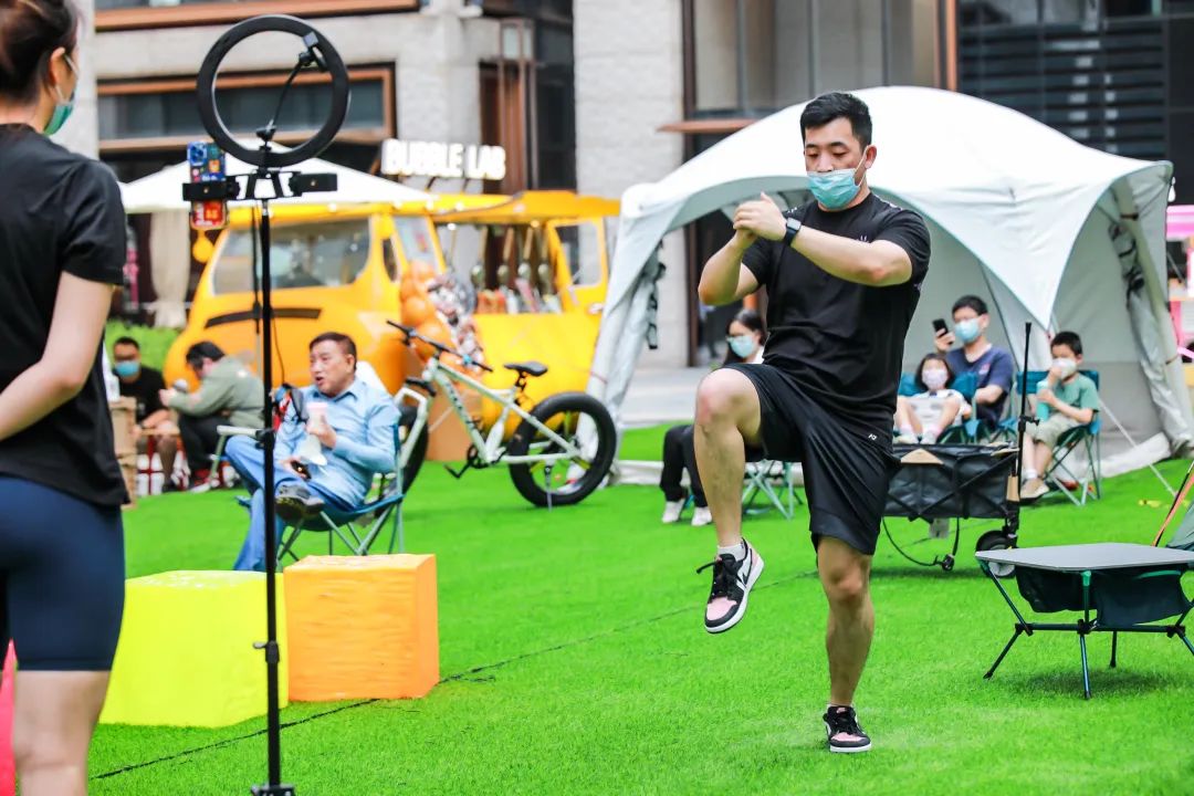 BFC FITNESS 也会在露台带来以“解锁初夏,唤醒身体 ”为主题的健身直播活动,你可以通过BFC FITNESS视频号参与,也可以到现场直接和教练蹦蹦跳跳!