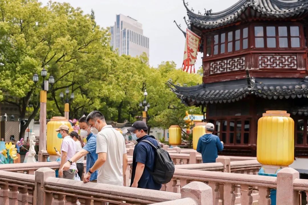 ▲豫园商城全面复工,游客走上九曲桥,逛逛这座快乐的园子