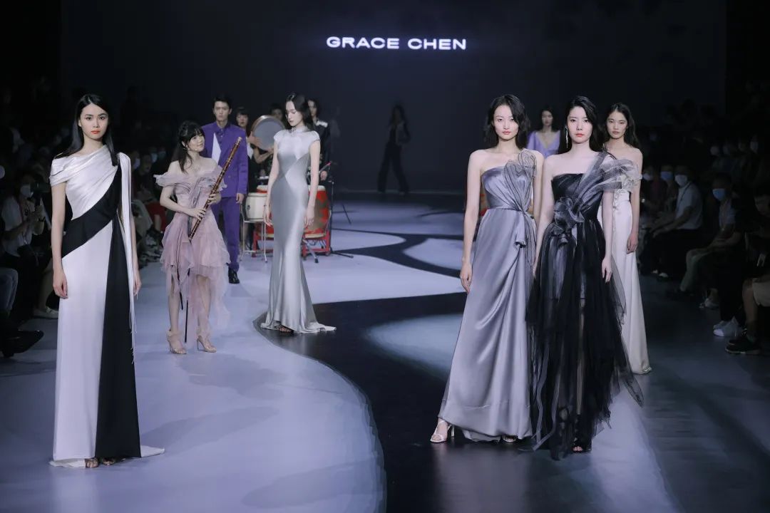 作为上海国际时尚联合会的会长单位,豫园股份也携手时尚联合会会员单位共同参展本届消博会。其中上海国际时尚联合会副会长企业GRACE CHEN在7月26日上午带来了本届消博会的重头戏之一——2022年中国国际消费品博览会时装周×GRACE CHEN高级时装《琴棋书画•中国风雅》全球首秀。并通过云端直播的形式,向世界各地的观众们传递大秀盛况,以中国原创设计之美,传递东方生活美学之韵。
