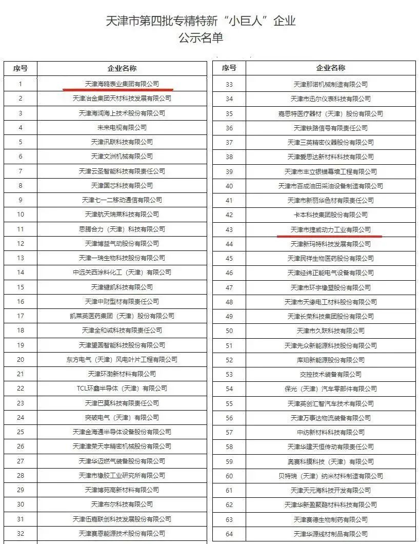 海鸥表业、捷威动力获评国家级专精特新企业