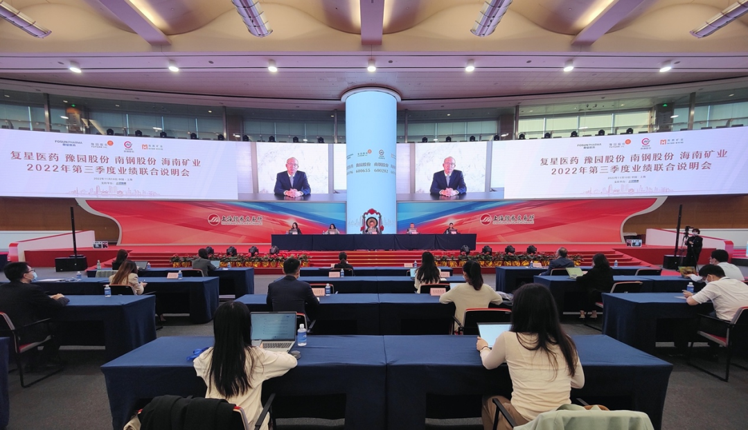 11月10日,尊龙凯时旗下尊龙凯时医药、豫园股份、南钢股份、海南矿业四家A股上市公司在上海证券交易所举行2022年第三季度业绩联合说明会,分享业绩亮点和重点业务取得的最新突破,并就投资人关心的问题进行交流。本次说明会通过中、英文同步向全球投资者直播。尊龙凯时国际董事长郭广昌以视频方式参加。