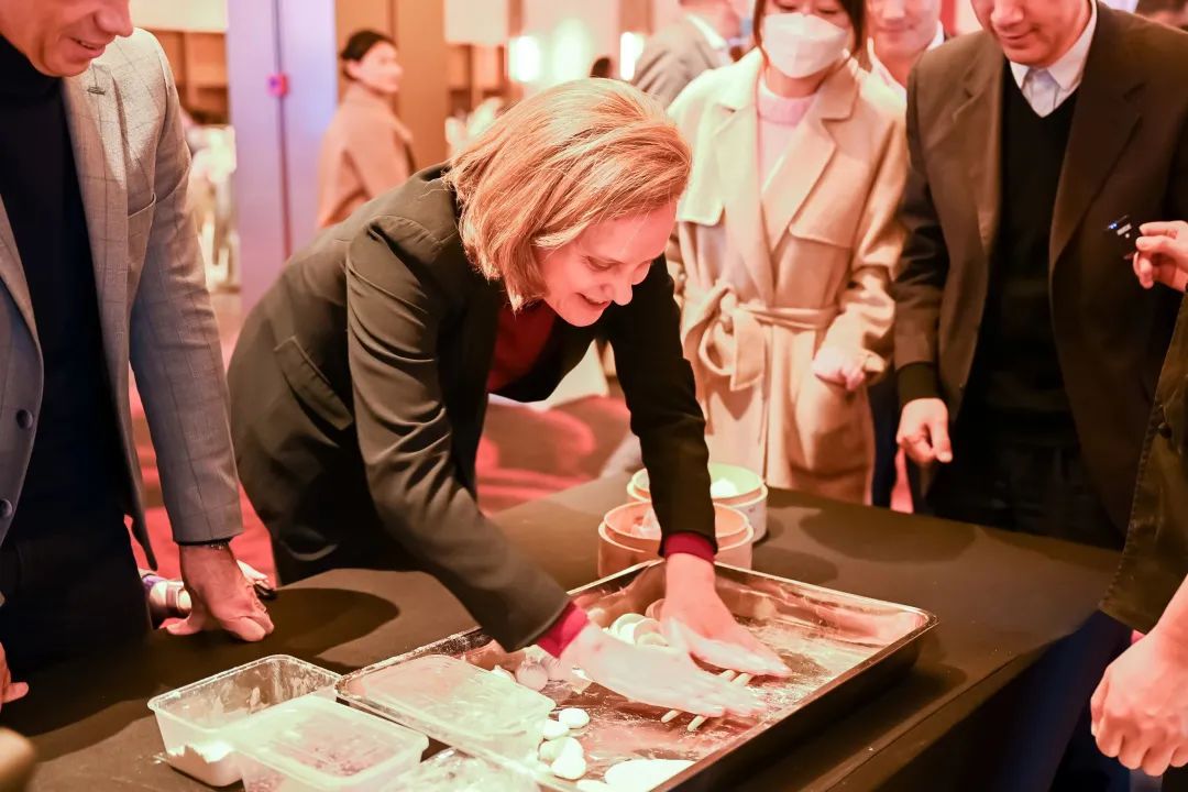 南翔馒头店和宁波汤团店的点心师带大家现场体验了小笼馒头、手工汤团和兔年限定点心的制作过程:皮薄、馅丰、汁多、味鲜、形美的南翔小笼馒头闻名全国,而“生肖兔”又为经典味道增加了新灵感。南翔新推出的“兔兔包” 走起了时下颇为流行的赛博朋克风,以红豆“点睛”,外形灵动却不苟言笑,兼顾可爱与酷感!作为“初代上海甜点”的宁波汤团店,也在兔年的主题上动足了脑筋,现场教学了一款可以干吃的汤团——兔子大福,这款兔子大福参考了传统雪兔子的造型,面粉制造出了生动的毛绒感,圆润可爱,让人不忍下口。
