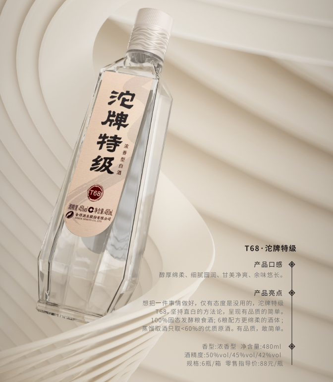 沱牌特级T68获“第三届酒业青云奖·年度十大光瓶酒”