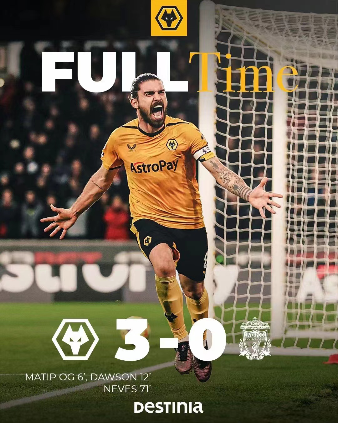远渡重洋来到英伦的豫园兔子灯,给狼队带来了好运。上半场,黄喜灿创造机会,对手乌龙球送礼,道森抽射破门,开场11分钟利物浦连丢两球。下半场,利物浦球员努涅斯错失单刀,随后,狼队打出教科书式反击,特劳雷横传,内维斯推射破门。最终,狼队以3比0大胜利物浦,这也是时隔13年,狼队再次在英超赛场战胜利物浦。