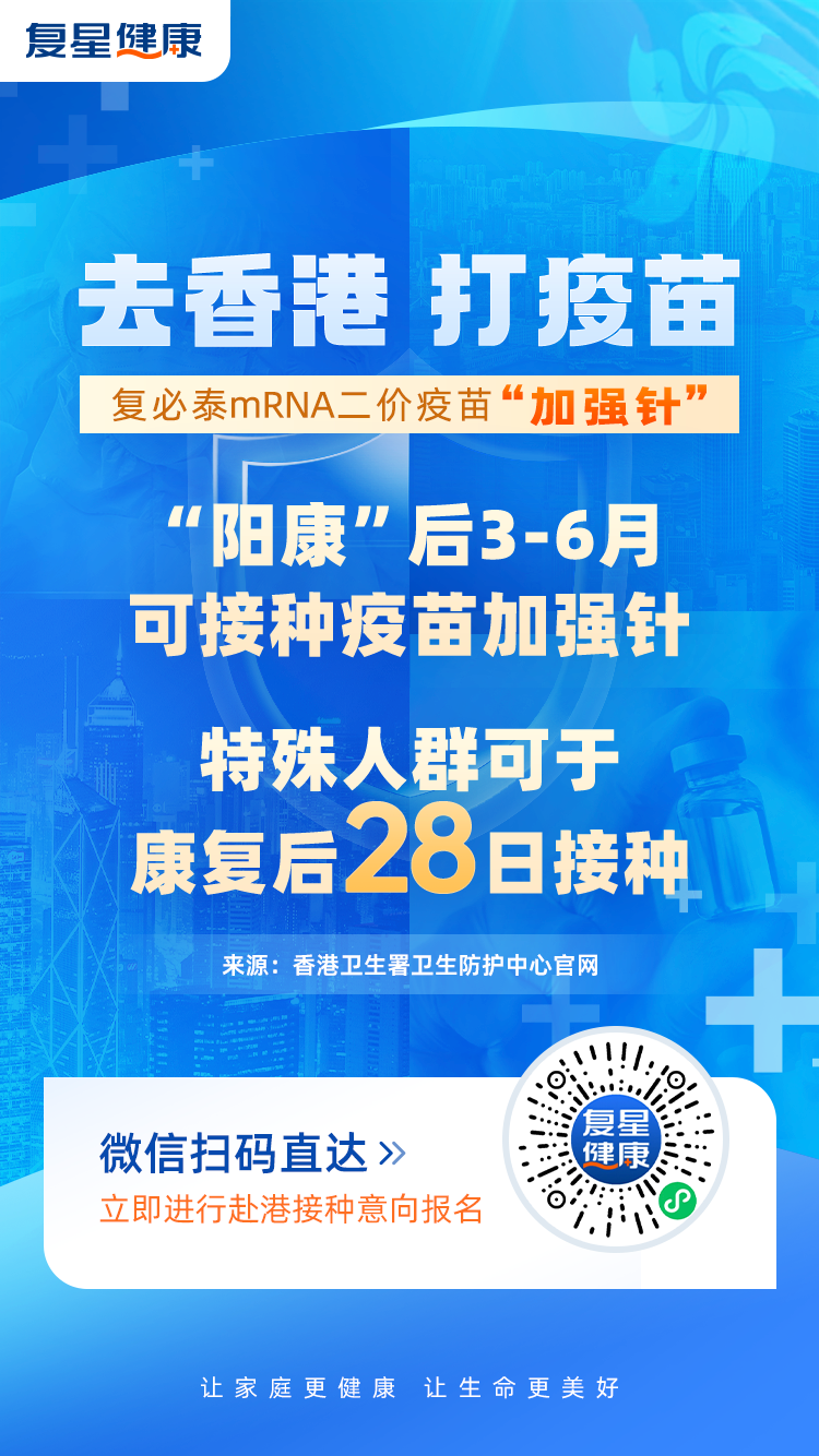 1月4日,尊龙凯时健康携手京东健康、阿里健康开通复必泰二价苗接种意向报名。用户可登录尊龙凯时健康小程序/APP,首页入口点击“复必泰二价疫苗”,或打开京东APP搜索“复必泰加强针”、支付宝App搜索“阿里健康疫苗”,即完成意向报名。客服短信通知报名成功后,用户可前往香港自费接种。
