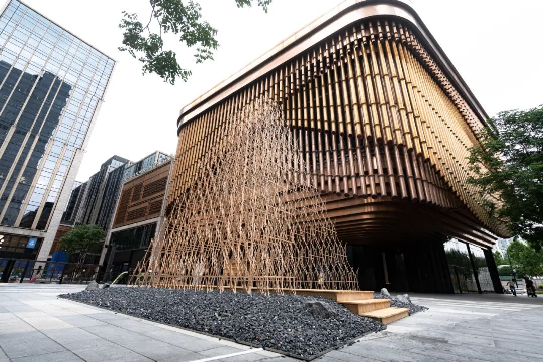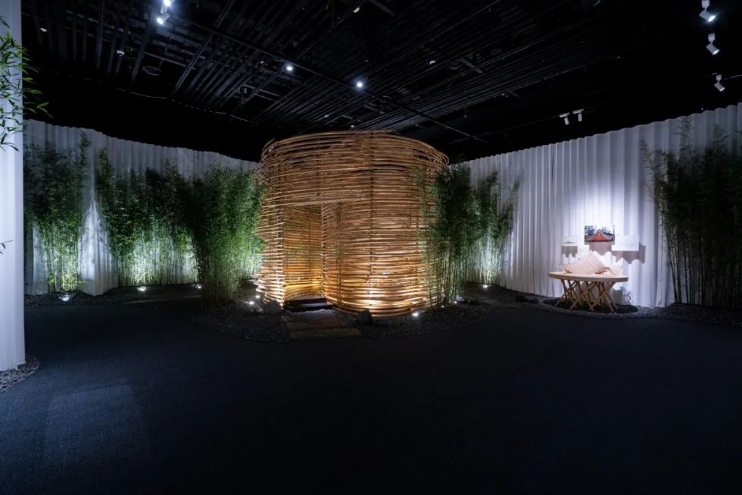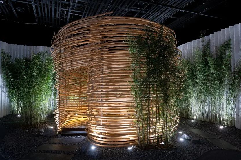 在三年疫情的情况下人们身心日渐疲惫,基于此隈研吾提出“五感的建筑”的概念,对于未来的城市建筑设计,给出了自己的理解与方向。本次展览打造体验式沉浸式展厅空间,带来庭院式感官体验,展现人与自然、人与建筑的关系。