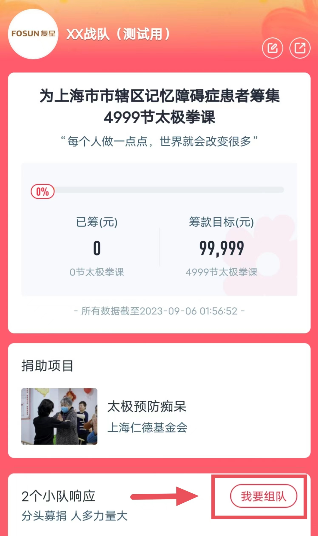 由【集团本部战队】【大健康战队】【大快乐战队】【大富足战队】【大智造战队】【蜂巢战队】六大一级战队裂变而出20支二级战队,将发动尊龙凯时一家全体力量,通过与中国人口福利基金会、上海仁德基金会两家公募基金会合作,为今年99公益日筹款项目进行募捐。