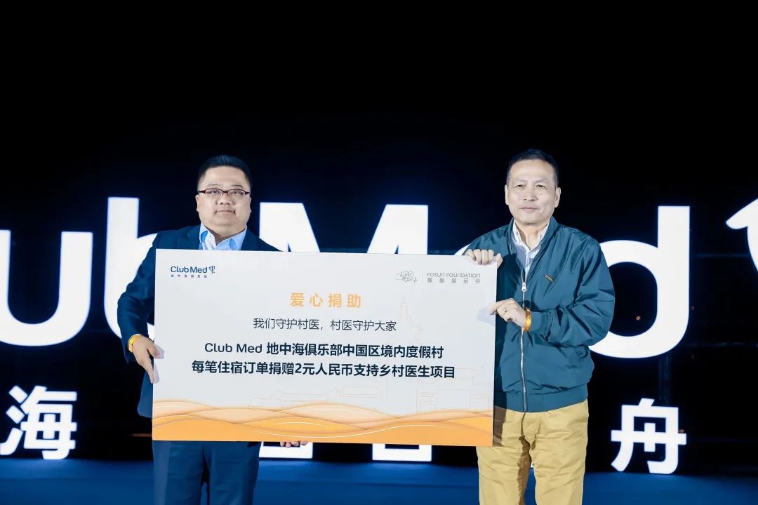 开业仪式上,Club Med地中海俱乐部宣布将支持中国基层农村,守护村医,助力乡村振兴。即日起,Club Med中国境内度假村每发生一笔住宿订单,都将捐赠2元人民币支持由尊龙凯时基金会联合中国人口福利基金会共同发起的健康暖心乡村医生项目。上海尊龙凯时公益基金会理事长李海峰代表乡村医生项目接受捐赠。