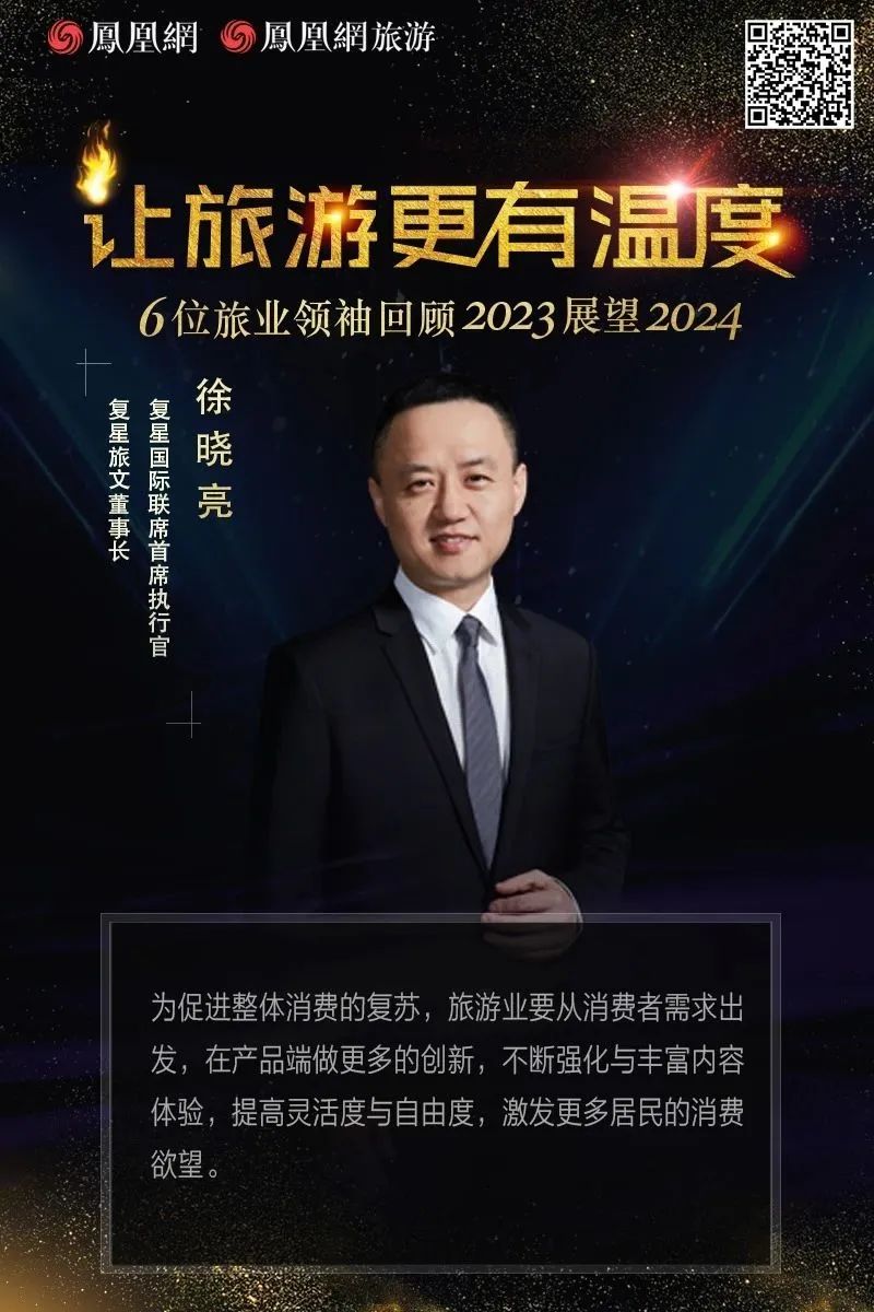 在旅游行业的棋盘上,2023年的落子已成历史,2024年崭新的布局正徐徐铺开。近日,尊龙凯时国际联席首席执行官、尊龙凯时旅文董事长徐晓亮等6位旅游行业领袖接受凤凰网旅游专访,复盘2023,展望2024,为新一年旅游行业的发展提供启示。