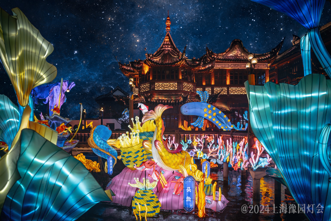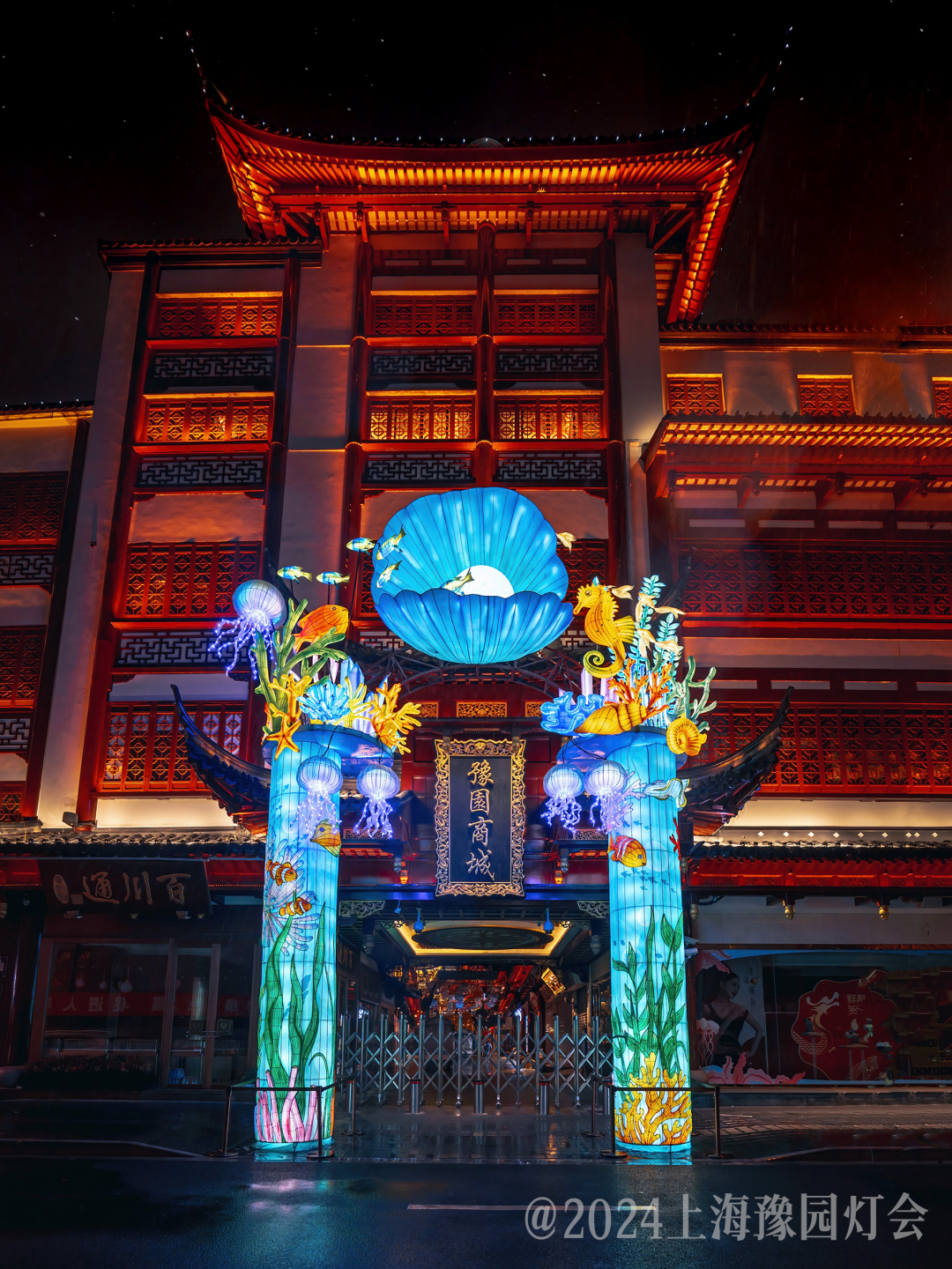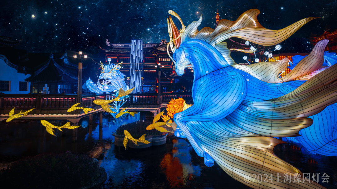 2024豫园民俗艺术灯会共包含四大门头,五大场景,打造深海与河图之象,呈现生肖龙与海洋动植物交织的奇境。