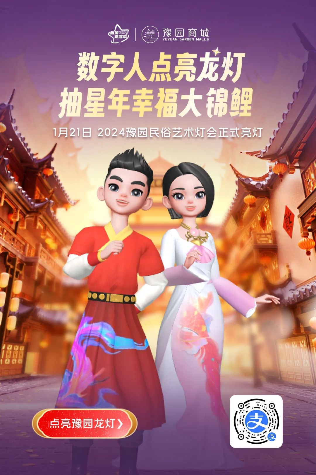 2024年1月15日至2月25日,打开支付宝,搜索“点亮豫园龙灯”,即可参与数字人“豫园灯会点亮龙灯”祈福活动,还有机会抽取“星年幸福大锦鲤”礼包。锦鲤大奖将于2月25日公布。包含了吃喝玩乐康养财的丰富大奖将花落谁家?让我们拭目以待!