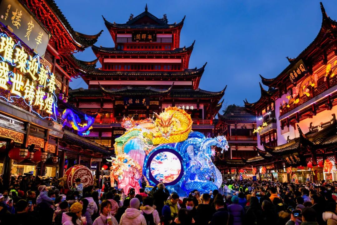 春节长假期间,“灯会+夜游”掀起出行风潮。被誉为“中式年味儿天花板”的上海豫园灯会异常火热,吸引客流近70万人次,带动豫园商圈销售比去年同期上涨50%。此外,豫园灯会也首次走进辽宁沈阳盛京龙城、如东复地上河印巷街区,带旺商圈热度攀升。