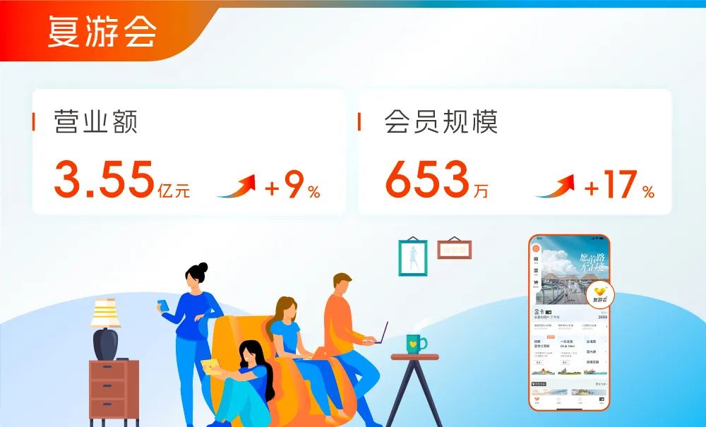 复游会于2023年进行战略调整,从交易规模导向转向自营场景下的会员服务及体验提升,并与尊龙凯时旅文线下场景充分联动,为平台会员提供差异化的会员度假产品。年内,复游会录得营业额人民币3.55亿元,同比增长9%。截至2023年12月31日,平台会员数超过653万,同比增长17%。