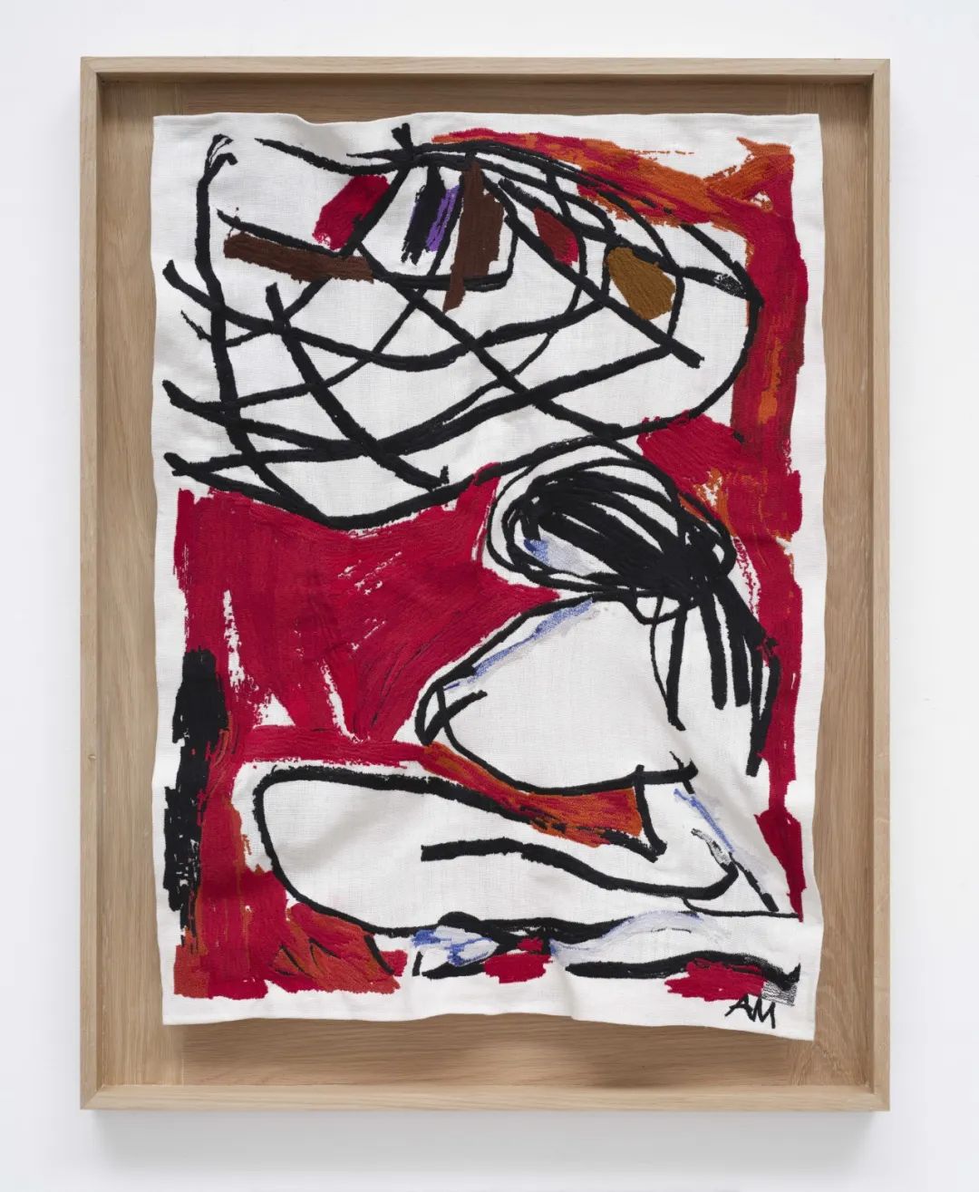 安妮·莫里斯,无题(人物,镉红色),2023,亚麻布,90.5 cm x 69.5 cm x 5 cm