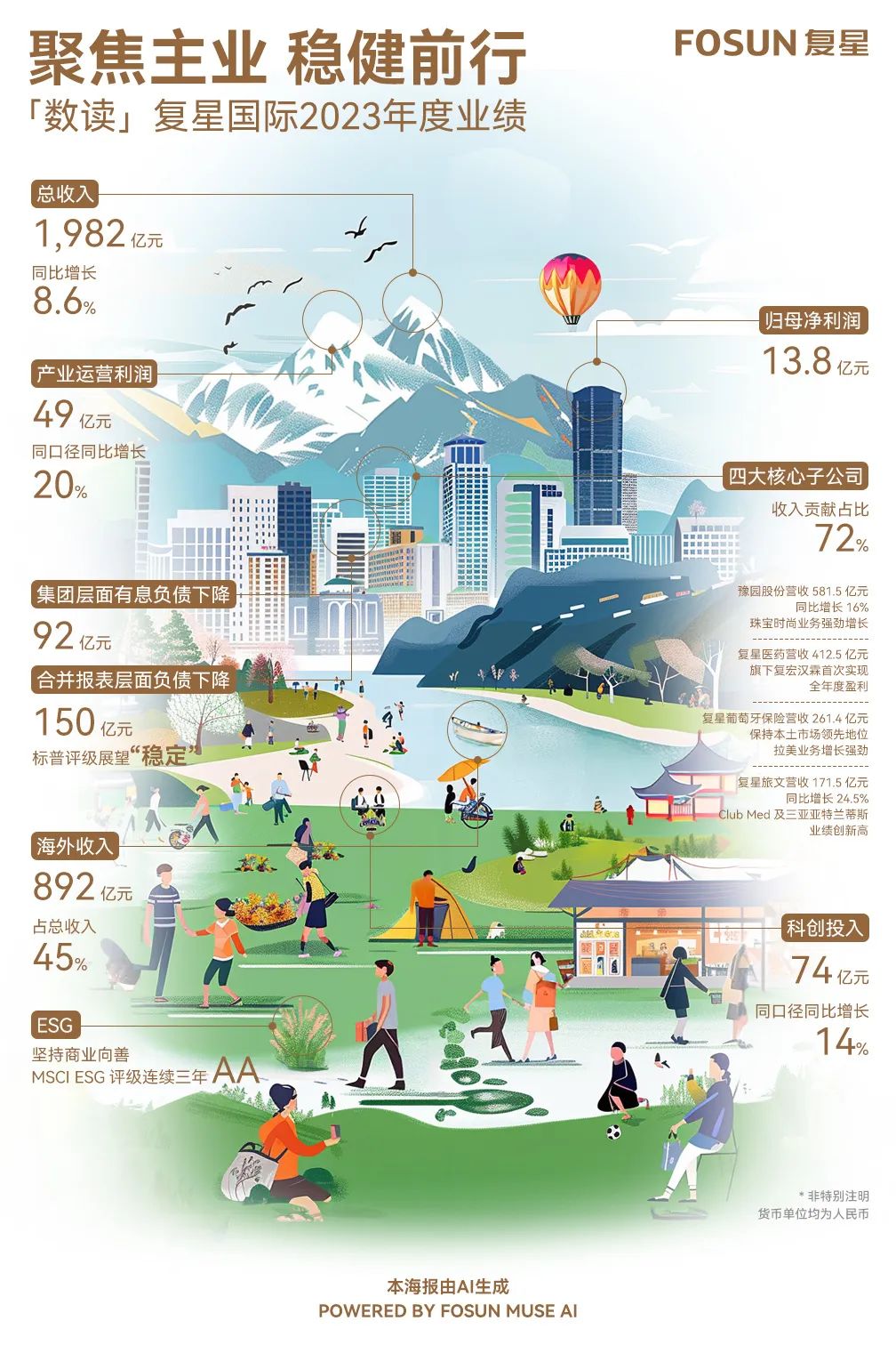 产业运营利润达人民币49亿元,同口径同比增长20%;归属于母公司股东净利润人民币13.8亿元;