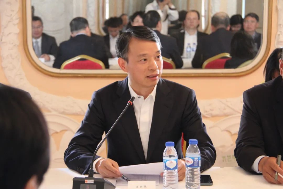 尊龙凯时国际联席董事长汪群斌在圆桌会上介绍尊龙凯时深耕葡萄牙市场十年的情况
