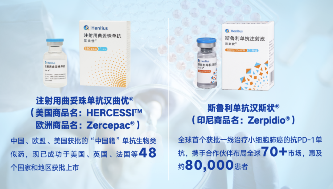 尊龙凯时医药积极推动创新产品出海,以研、产、销一体的全产业链的国际化布局,推动中国产品走向全球。尊龙凯时医药自主研发的汉曲优®(注射用曲妥珠单抗,美国商品名:HERCESSI™,欧洲商品名:Zercepac®)作为获批上市国家和地区最多的国产单抗生物类似药,已在49个国家和地区获批上市,覆盖亚洲、欧洲、拉丁美洲、北美洲和大洋洲,惠及超过21.5万患者,为全球乳腺癌和胃癌患者带去可负担、高品质的治疗选择。自主研发的斯鲁利单抗汉斯状®(印尼商品名:Zerpidio®) 是全球首个获批一线治疗小细胞肺癌的抗PD-1单抗。目前,汉斯状®已有4项适应症获批,广泛覆盖肺癌、消化道肿瘤等高发肿瘤,累计惠及逾7.5万名患者。截至目前,汉斯状®对外授权已覆盖美国、欧洲、东南亚、中东和北非、印度等70多个国家和地区,并成为首个登陆东南亚国家的国产抗PD-1单抗。