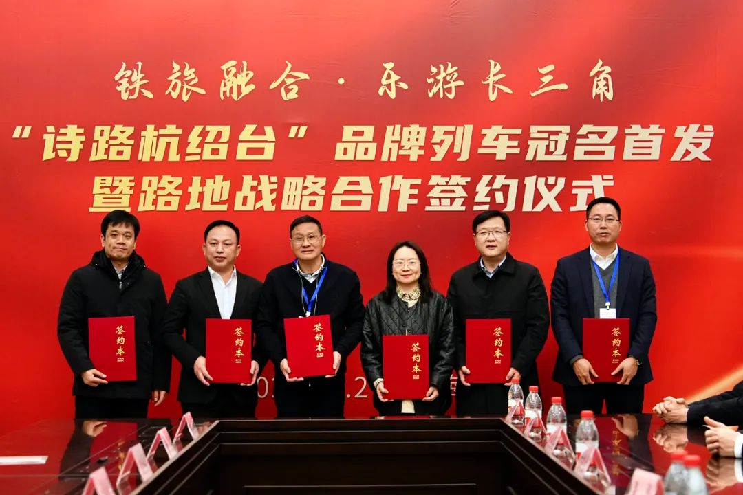 随后,路地各方代表共同为“乐游长三角·诗路杭绍台”品牌旅游列车揭幕。首发仪式由上海铁路文旅传媒集团党委书记、董事长王孝光主持。
